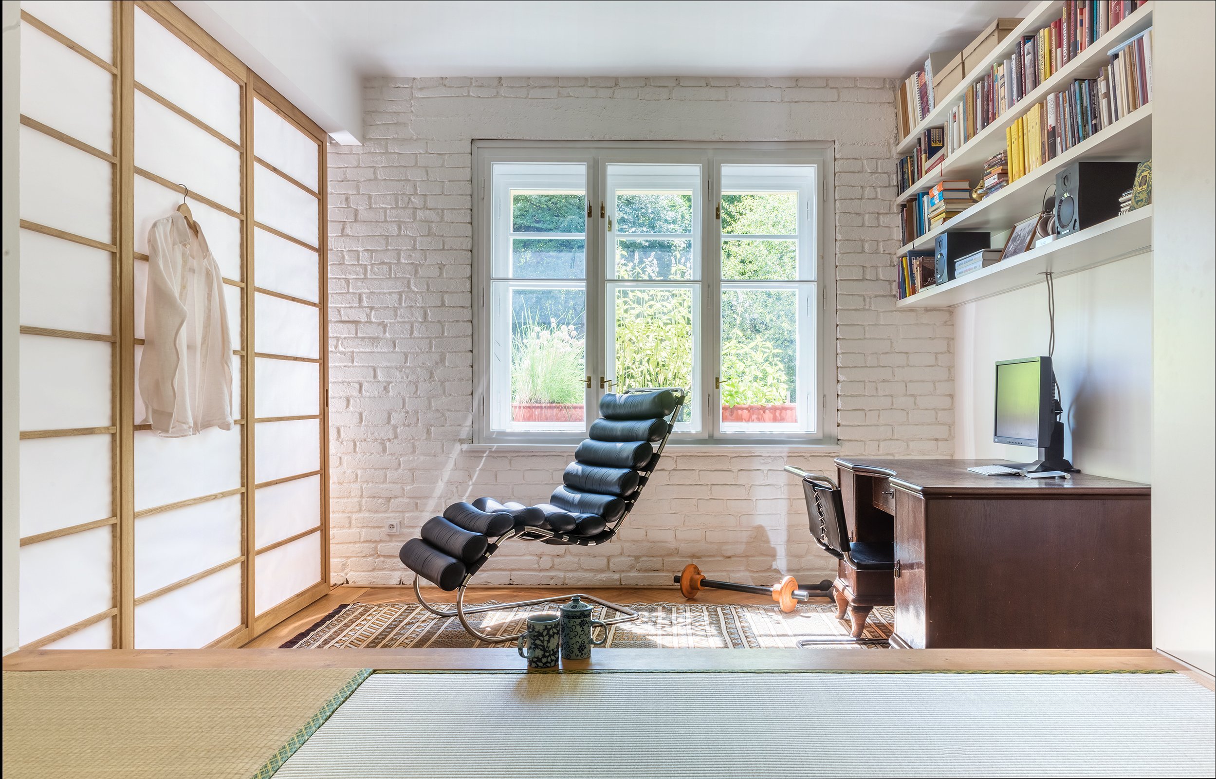 Rekonstrukce prostorově úsporného bytu, v němž chybí místo na samostatný obývací pokoj, byla velkou výzvou. Zadáním bylo mimo jíné propojit původní nábytek s asijskými prvky, multifunkční využití pódia s tatami znamenalo pro tak malý byt velké plus. Díky odstranění příčky mezi pokoji došlo k vytvoření jednoho vzdušného prostoru, který lze rozdělit japonskou posuvnou stěnou. Tím jsme vpustili do celého prostoru více světla a vzduchu a mohli jsme majiteli splnit přání velké pohodlné kuchyně s jídelním stolem.