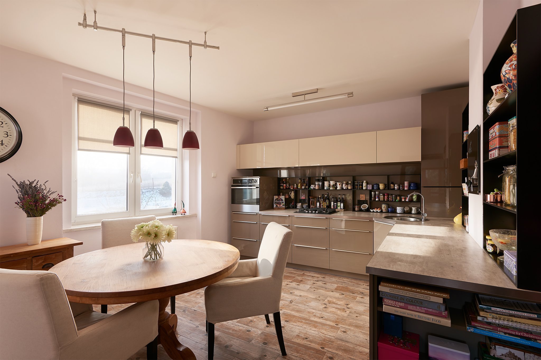 Na první pohled jednoduchá kompozice v sobě skrývá neobvykle hluboké úložné prostory, které umožní nejen velkorysé ukládání v uzavřených částech kuchyně, ale využívá plnohodnotně i příruční plochy k odkládání všeho nezbytného ke kulinářskému umění.