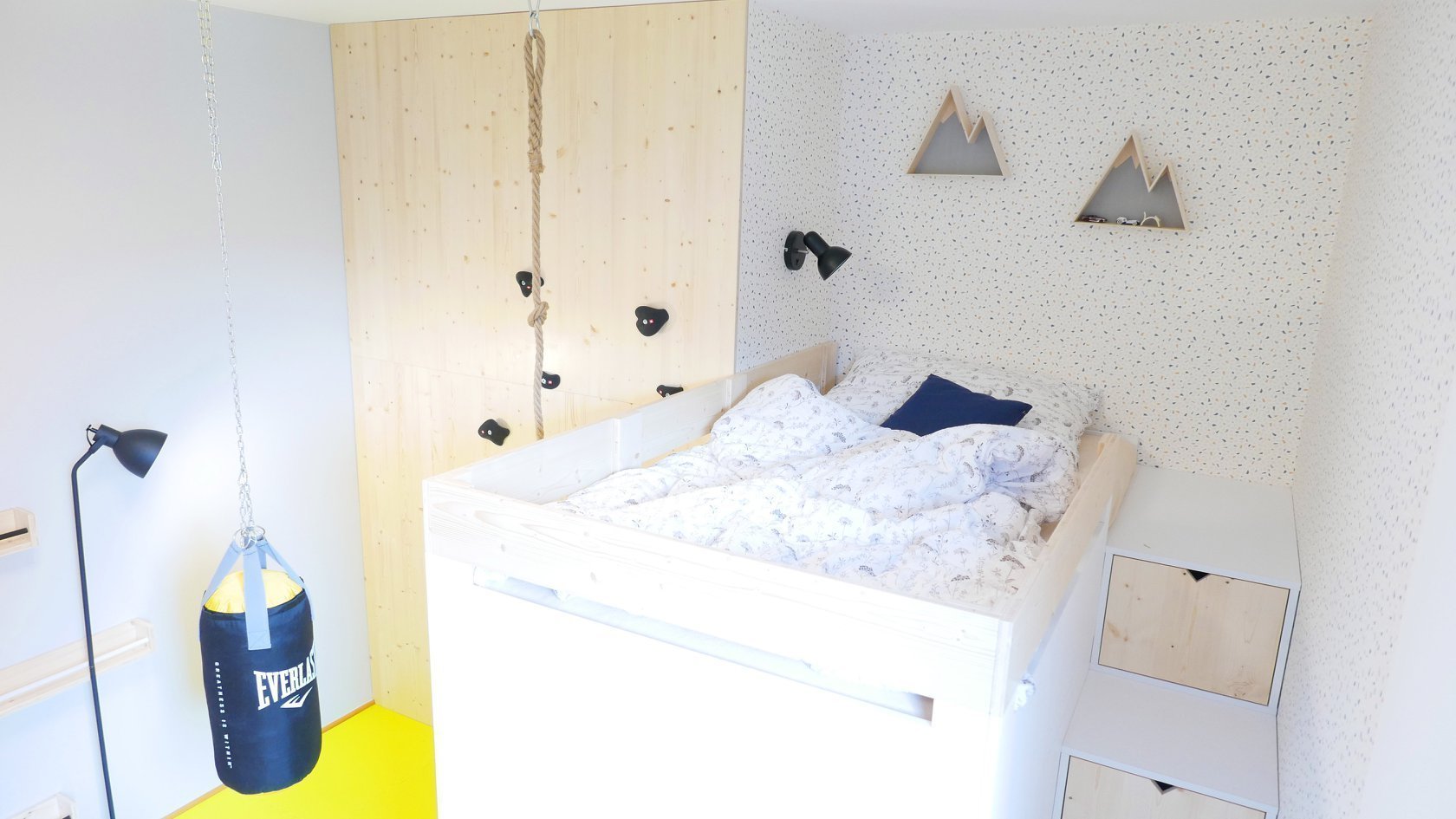 To bylo naší vizí při plánování dětského pokoje pro jednoho akčního a zvídavého chlapce. Tak vznikl prostor s vrcholky hor, lezeckou stěnou, šplhacím lanem, boxovacím pytlem a jednou úplně utajenou skrýší!
