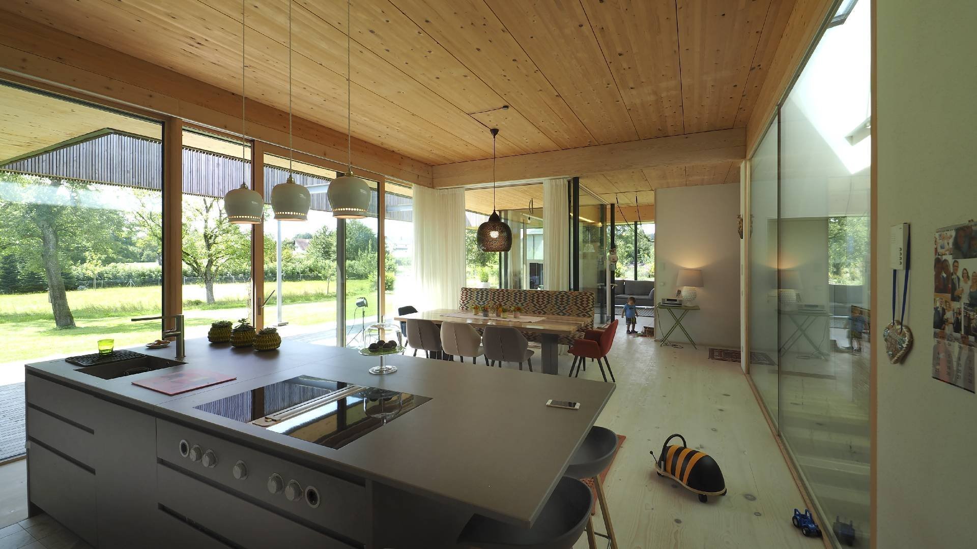 Hlavním cílem architektů bylo vytvořit takový dům, do něhož se dostane velké množství přirozeného denního světla i přírody. Těmto požadavkům se učinilo zadost, když se uvnitř domu vytvořily světlíky, ale i velké skleněné plochy v obývacím pokoji a jídelně, dále pak konzolová a částečně krytá terasa. Právě terasa se stala jakýmsi místem, kde lze trávit svůj volný čas v létě i v zimě – za neustálého pocitu, že se nacházíme v přírodě.