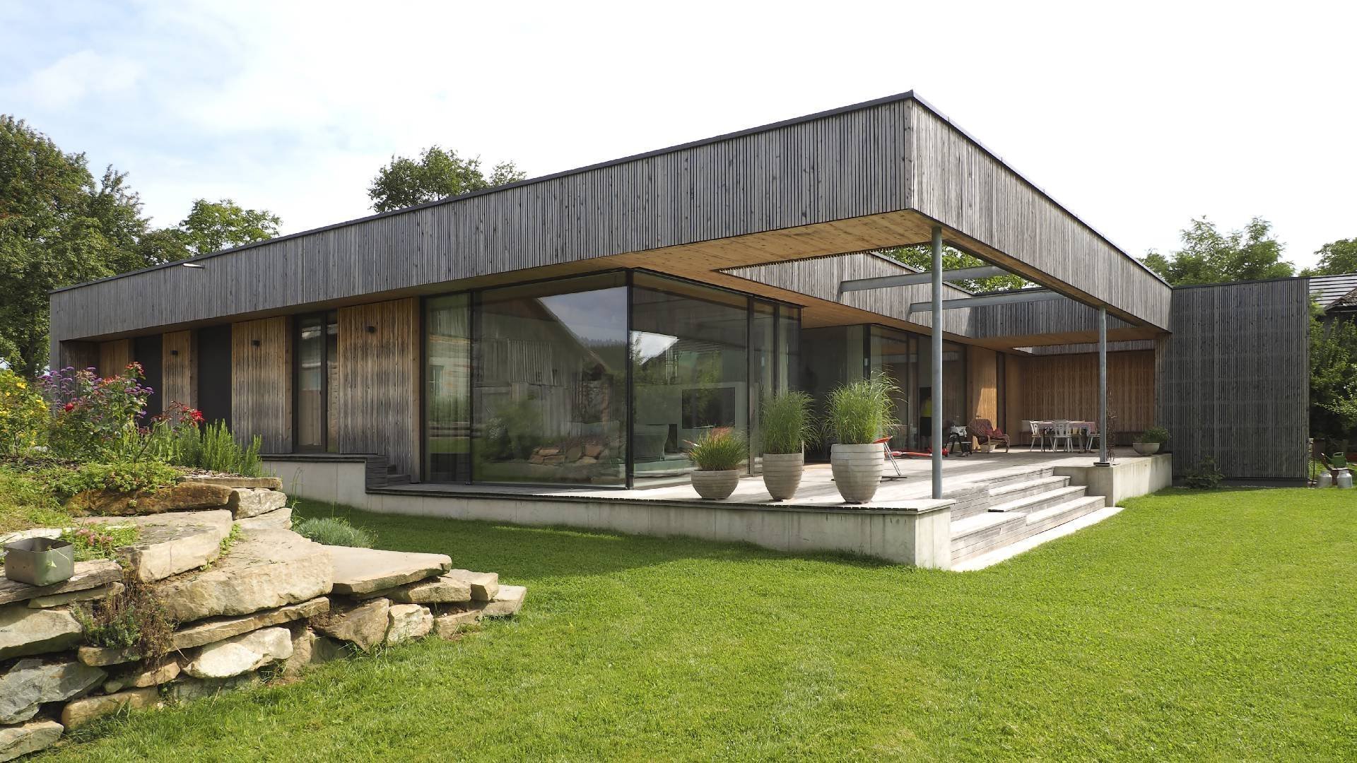 Plánování jednopodlažního domu stojícího nad starým cihlovým sklepem bývalého statku trvalo projektantům téměř rok. Následná stavba domu pak zabrala rok a půl. A co bylo výsledkem této dlouhé práce? Krásná novostavba plná skla a dřeva.