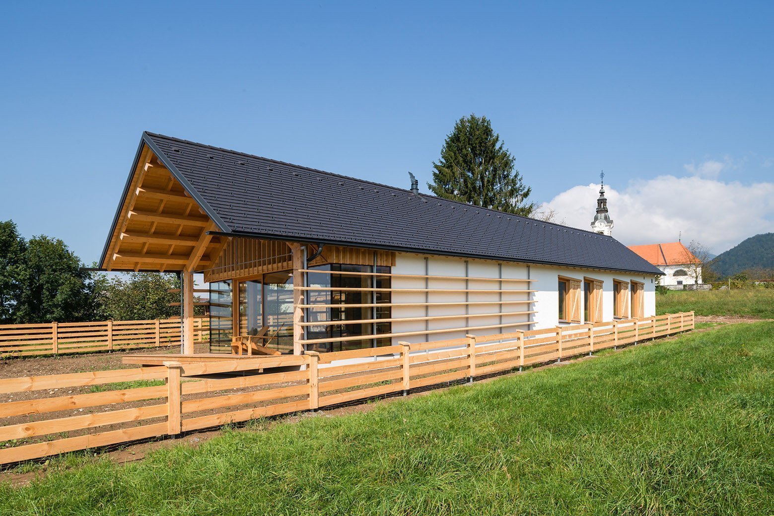 Při toulkách Slovinskem, byste natrefili i na tento dům, který se rozprostírá v čarokrásné prostředí přírody a působí jako stodola, který svou architekturou učaruje téměř každému milovníkovi přírody. Dům, vypadá zvenku jako stodola a harmonicky zapadá do venkovské krajiny. Uvnitř však ukrývá jedinečný prostor pro každodenní klidné bydlení. Prostorná obývací pokoj a kuchyň je zařízená v příjemných teplých odstínech s použitím dřeva.