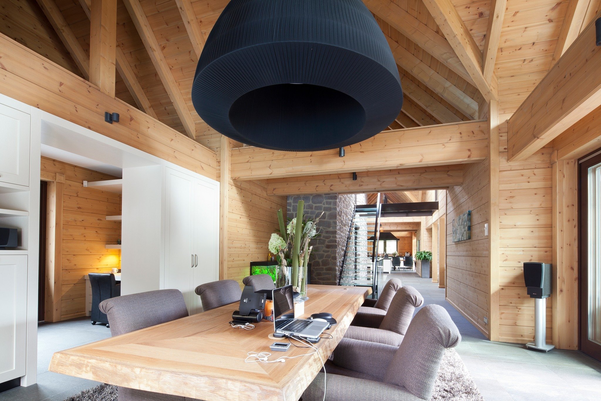 Srubový dům, který byl pod finskou značkou postaven v Nizozemsku, se nachází uprostřed lesa, do nějž naprosto přirozeně zapadá. Dokonale v sobě spojuje krásu přírodního kamene a masivního dřeva. V interiéru tak vzniká naprosto výjimečná atmosféra. Dům přitom bez podsklepení zaujímá plochu o velikosti 263,5 m2. Nechybí zde ani velký vnitřní dvůr pokrytý dlaždicemi a uprostřed umístěný bazén. U bazénu stojí další budova zaujímající plochu o velikosti 27,5 m2. Vzhled budov je přitom kompaktní a spojený zmíněným dvorem. Vstupy a terasy jsou díky širokým okapům příjemně kryté.