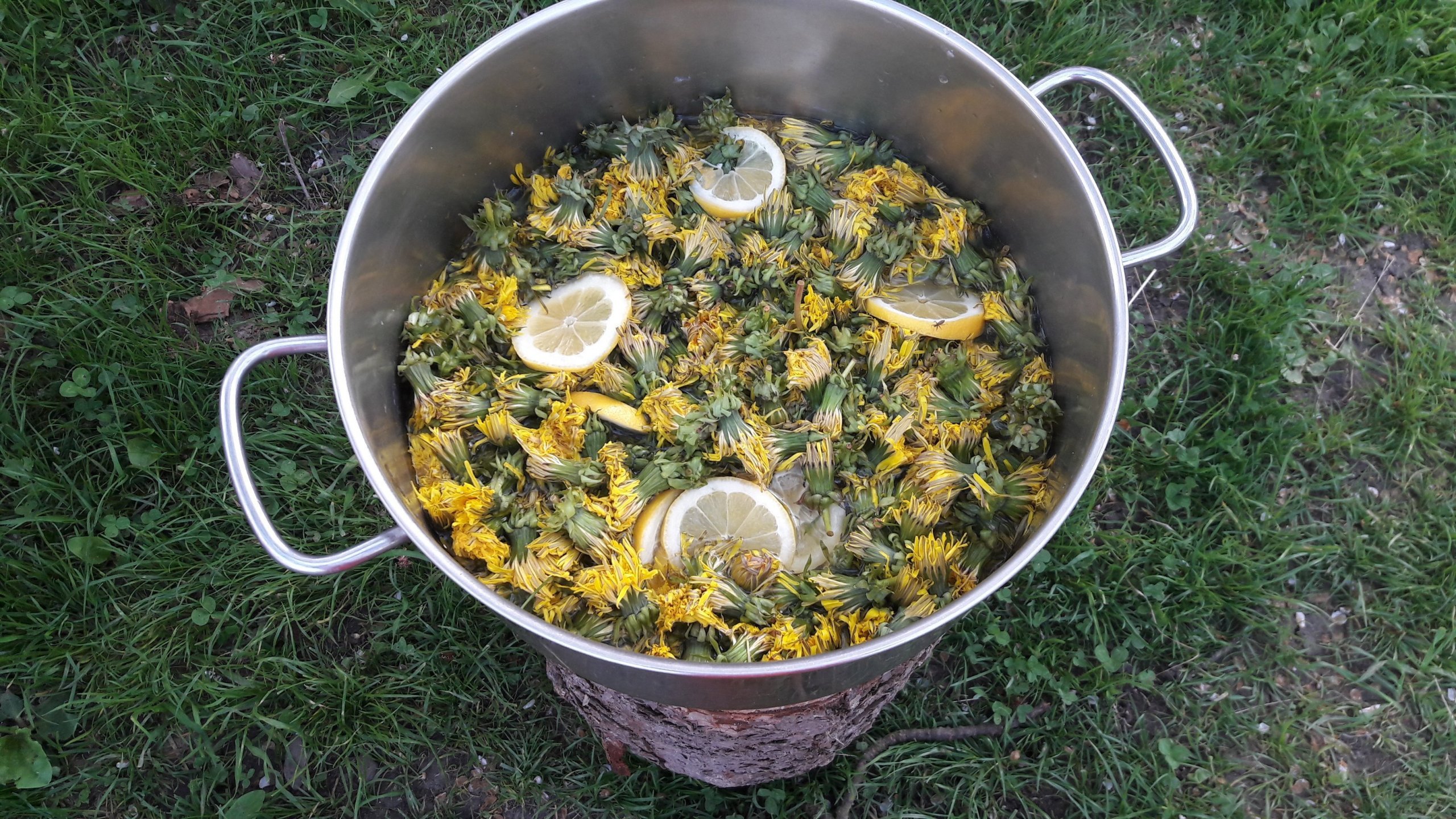 Pampeliškový med není sice medem v pravém slova smyslu, jedná se spíše o sirup, ale protože je medu podobný jak svou nazlátlou barvou, konzistencí, tak i obsahem pylu, vysloužil si právem toto označení. Teď už ale pojďme na louku za květy! Trhání kvítků sice nějakou tu chvíli zabere (budete jich potřebovat zhruba 400), ale můžete to pojmout i jako zábavné počítání s dětmi a pro vás jako zkoušku koncentrace a trpělivosti. Až děti přestane sběr květů bavit a odběhnou zkoumat brouka nebo vařit lektvar z písku a bláta, vy pokračujte a trhejte a trhejte, a až se dostanete přibližně ke 400 stovkám kvítků, jste se sběrem v cíli. Můžete se rozvalit v louce nebo si dát kávu a nabírat síly před samotným procesem výroby, který je velmi jednoduchý..