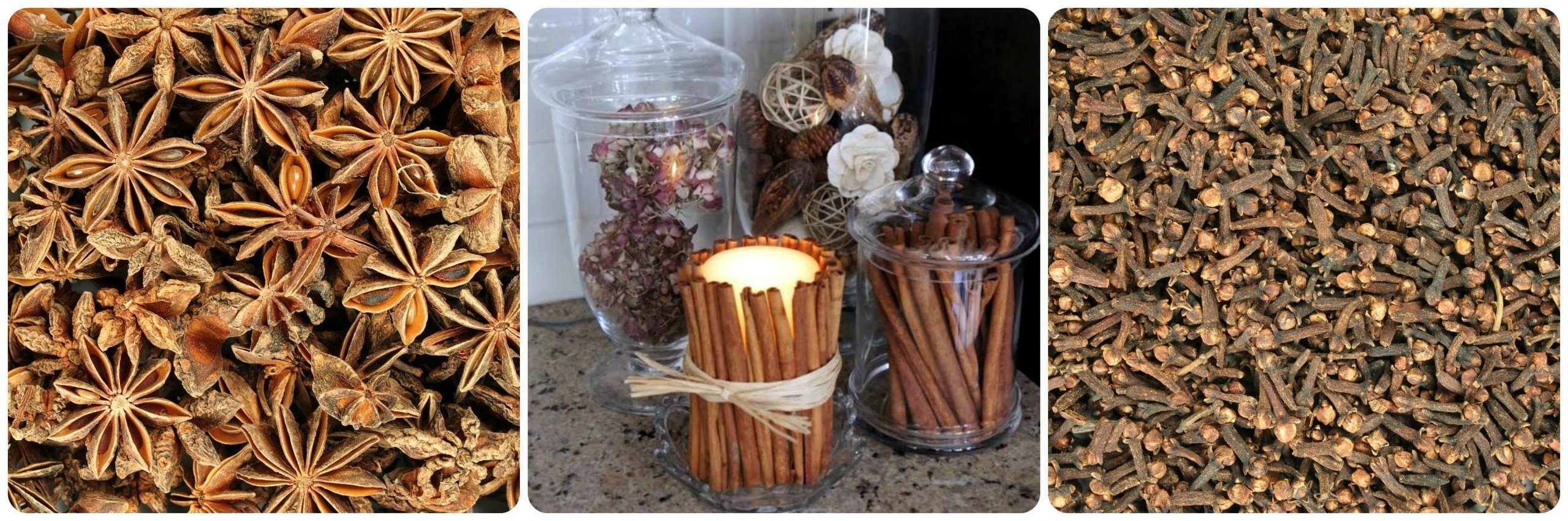 Hřebíček, badyán, vanilkový lusk, skořice,… a mnohem víc druhů voňavého a krásného koření si můžete namíchat na misku, nebo jinak použít pro ozdobu svého domova. Například skořicí je možno obložit sklenku, svázat provázkem, nebo stužkou a dovnitř zapálit čajovou svíčku. Nejen, že to krásně vypadá, ale také se skořice nádherně rozvoní.