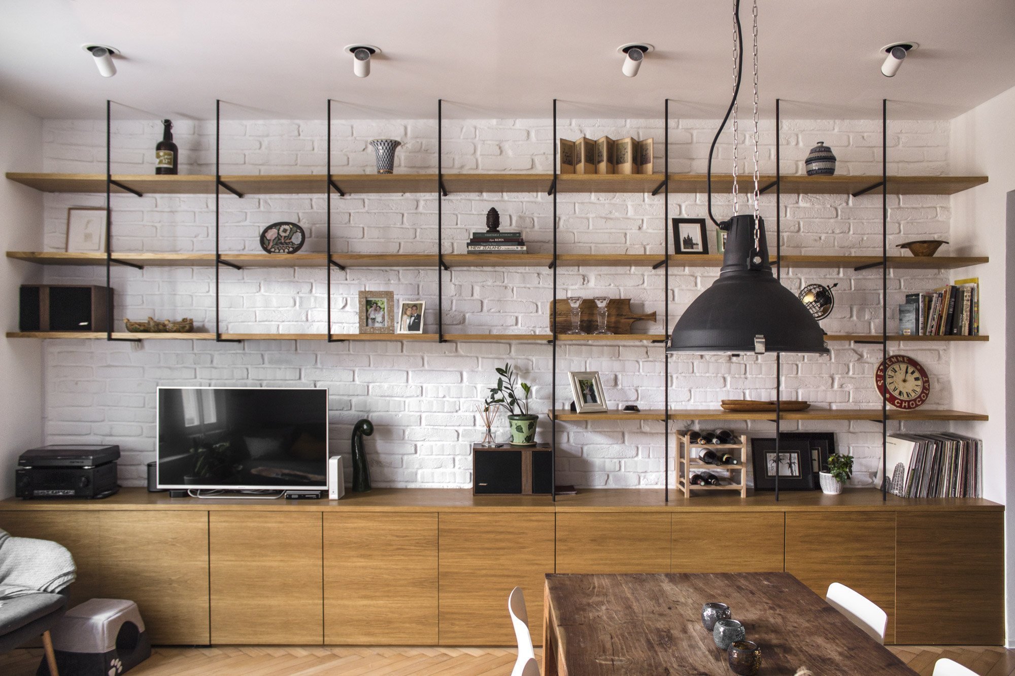 Ve výsledku tak v prvorepublikovém bytě vznikl naprosto autentický prostor, ve kterém se příjemně mísí původní prvky s těmi industriálními. Je tedy příkladnou ukázkou spolupráce architektů a klientů, z nichž ani jednomu není odvaha a smysl pro fantazii cizí.