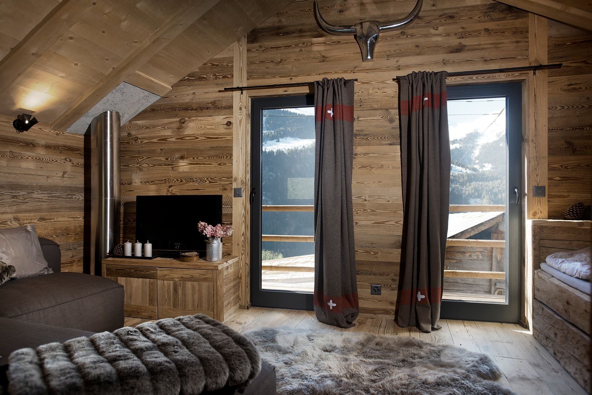 Zvýšená pozornost byla věnována také vnitřnímu zařízení. Znovu byly použity různé původní kusy vybavení, které pak noví majitelé stodoly citlivě zkombinovali s moderními prvky. Své místo tak zde zaujal severský styl reprezentovaný vlněnými dekami a polštáři v přírodních barvách, na zdech se ocitly dobové artefakty a na podlaze kůže. Přirozená barva interiérových doplňků podtrhla barvu dřeva a vznikl tak příjemně teplý interiér uprostřed alpské přírody.