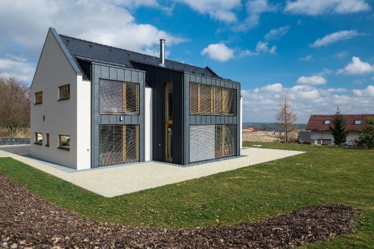 Zdánlivě vyčerpané téma malého rodinného domu s důrazem na architektonickou kvalitu a potřeby jeho obyvatel. Střízlivá hmota s vyváženou kompozicí okenních otvorů v dřevěné fasádě, dispozice vyřešená s důrazem na rozumné využití každého ze sta čtverečních metrů užitné plochy. Přízemí nabízí slušné zádveří, otevřený prostor pro veliký jídelní stůl, sedací část a kuchyni s ostrůvkem, oddělené pracovní místo i možnost pro přespání návštěv, to vše se symetrickými návaznostmi na prvky v interiéru i propojení s venkovní terasou. Patro je možné rozdělit několika způsoby, ten základní je pro čtyřčlennou rodinu – veliká ložnice, dva dětské pokoje a koupelna včetně sprchového koutu. Obvykle nevyužité prostory pod hřebenem střechy skýtají dostatek místa pro umístění technického vybavení domu a pro uložení sezónních věcí. Logika konstrukční i dispoziční při respektování zásad navrhování v systému novatop eliminuje nadbytečné výdaje na stavbu domu, tvar domu, velikost a pozice otvorů umožňují s přehledem splnit parametry pasivní stavby, samozřejmě za předpokladu perfektního provedení a odpovídajícího technického vybavení.