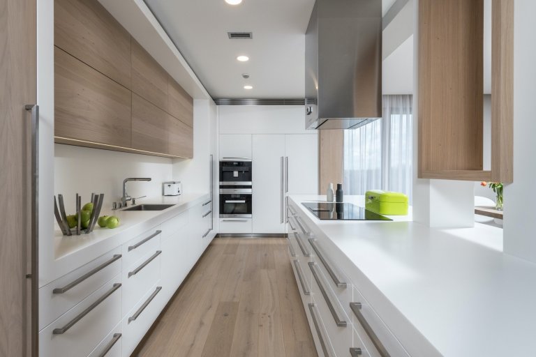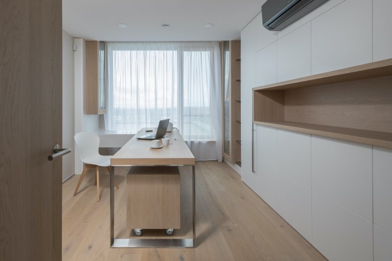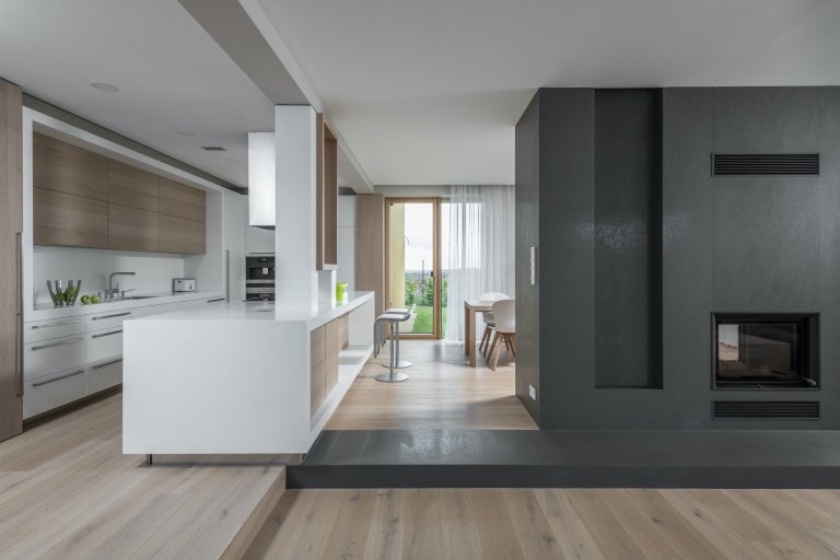 Dům prodávaný v developerském projektu „shell&shore“ byl dokončen jako vnější obálka s možností zvolit si téměř libovolnou vnitřní dispozici. Zdánlivá výhoda se však při řešení interiéru ukáže jako past: realizace vyžaduje účast všech stavebních profesí jako při stavbě celého domu. Práce architektů je mnohem komplikovanější, jsou omezeni konstrukčním systémem a polohou instalací. Dům by se měl totiž navrhovat „zevnitř“ podle potřeb klienta, mít jasnou koncepci a vnější plášť pak nakonec „obalí“ život v domě.