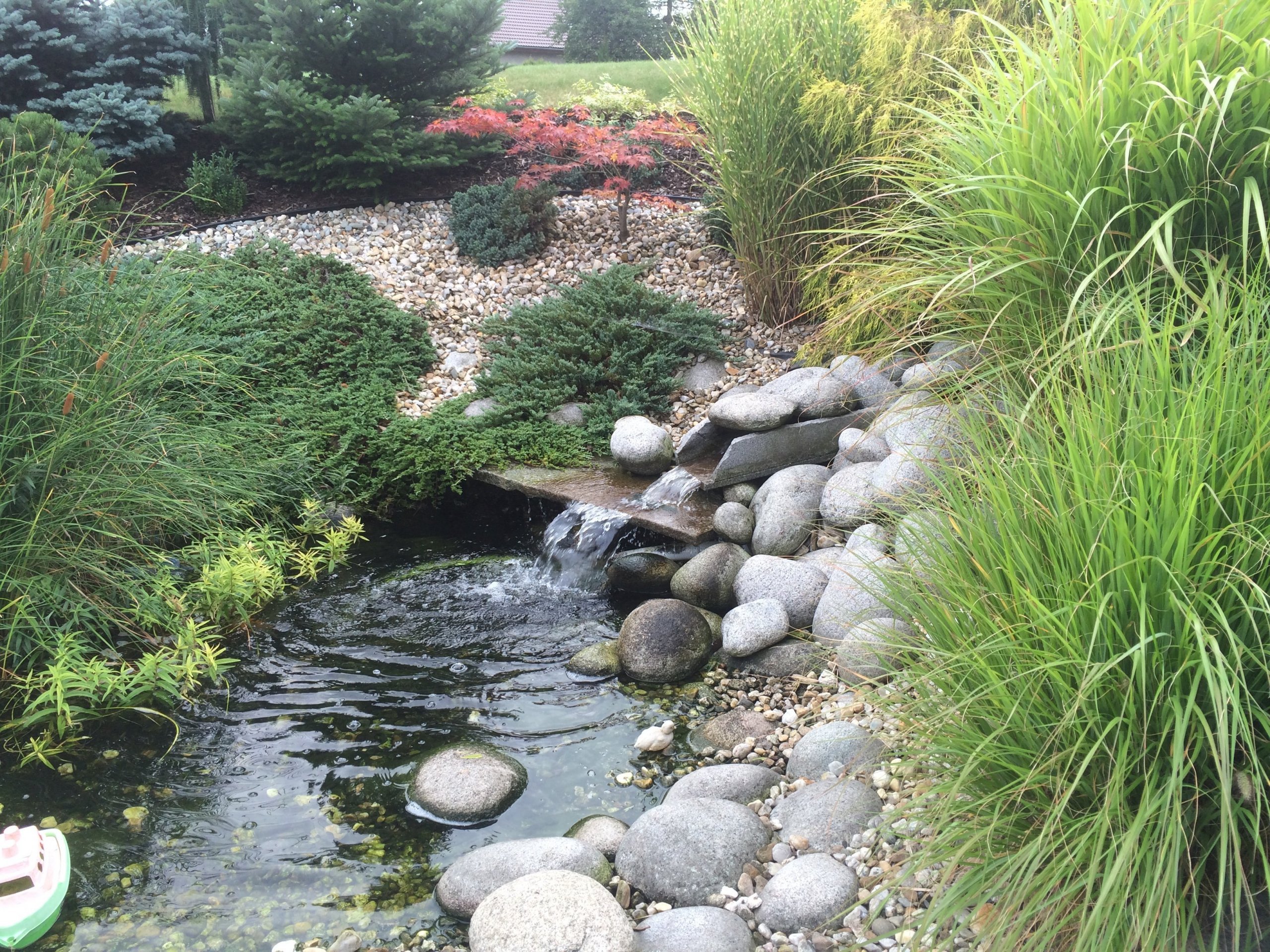 Zahrada u RD s malým jezírkem, provádíme zde i pravidelnou údržbu