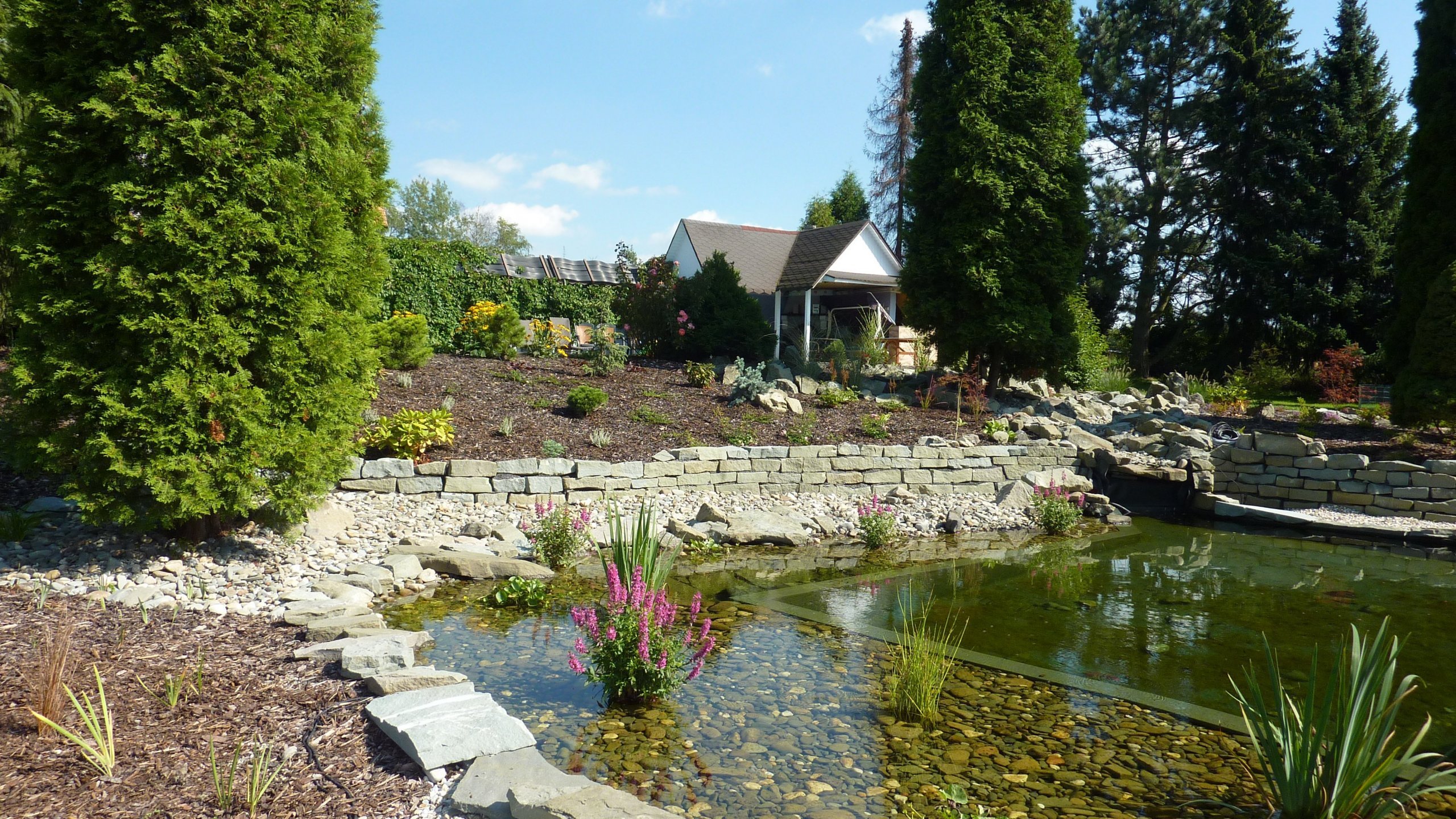 Zahrada s jezírkem a skalkou