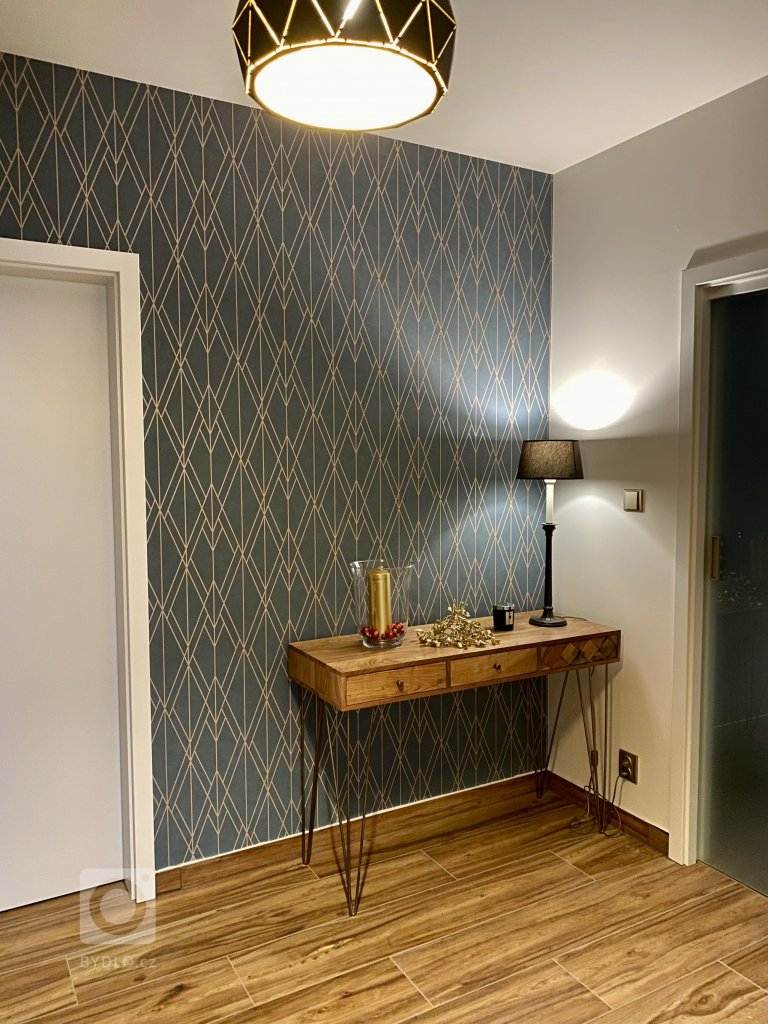 Rodinný dům Stradonice. Realizace interiérů dřevostavby pro rodinu s odrostlými dětmi. Hlavním požadavkem byl vzdušný a světlý interiér s důrazem na vstupní část dom. Vstupní hala plní nejen reprezentativní funkci, ale má i dostatek úložných prostor.