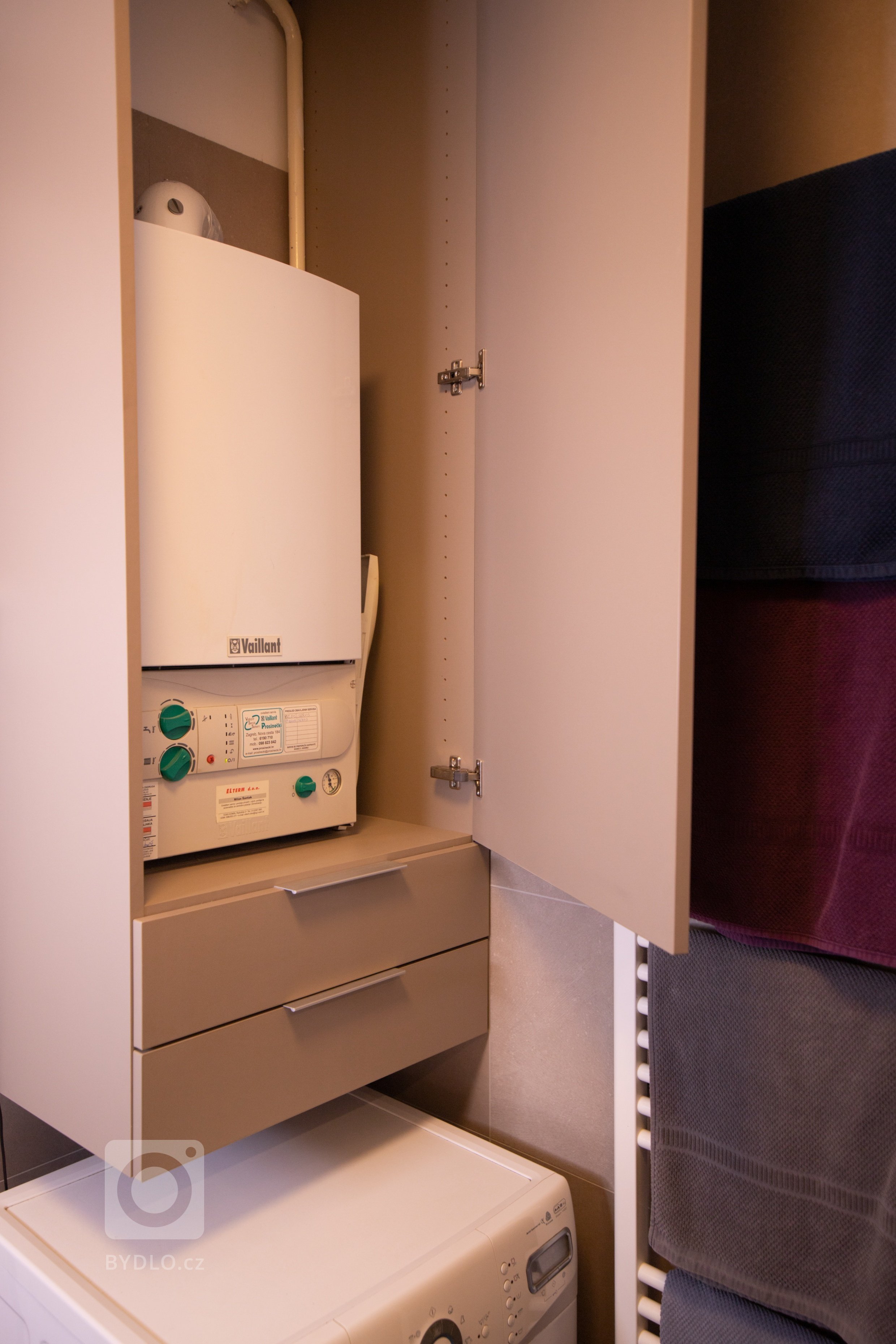 Nevzhledný kotel byl schován do skříňky s úložním prostorem.