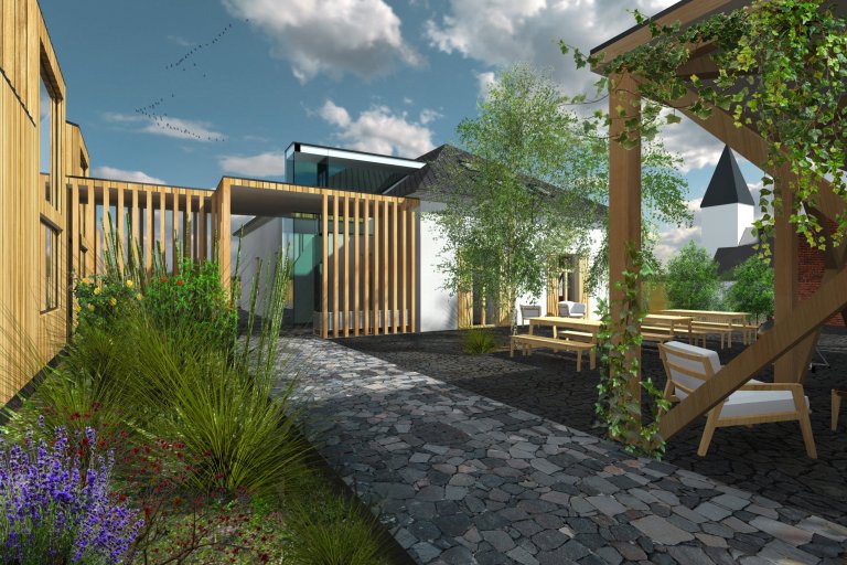 V budově fary by mohla vzniknout kavárna a klubovna, v jejím podkroví pak budou pronajímatelné jednotky pro různé služby. V blízkosti farní budovy je navržen bytový dům pro seniory a budova multifunkčního sálu s malou tělocvičnou. Venkovní pobytové terasy budou doplněny krytým altánem. Zahrada nově osázena a doplněna zpevněnými plochami i ohništěm. Budovy jsou umístěny tak, aby bylo zajištěny logické návaznosti a zároveň zůstala zachována pohledová osa fara - kostel.