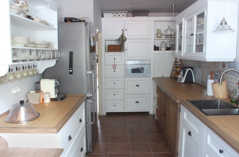 Oslovila mě kamarádka Lucka s tím, že by si moc přála předělat kuchyň ve svém panelovém bytě a to do stylu našich kuchyní. Snažila jsem se jí nejdříve odradit, protože jsem si nebyla výsledkem úplně jistá a bylo mi jasné, že prostor je minimální a tudíž se celá kuchyň bude muset vyrobit kompletně na míru. To znamená, že na nabídku našich typizovaných dílů, které nabízíme, můžeme zapomenout a musím navrhnout něco, co jí perfektně sedne, jak rozměrem, tak praktičností a stylem. Celé dílo vzniklo pod rukama našich partnersých truhlářů pod vedením pana Michálka, za což jm patří velký dík.