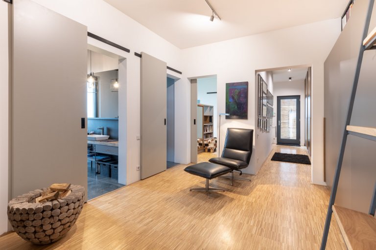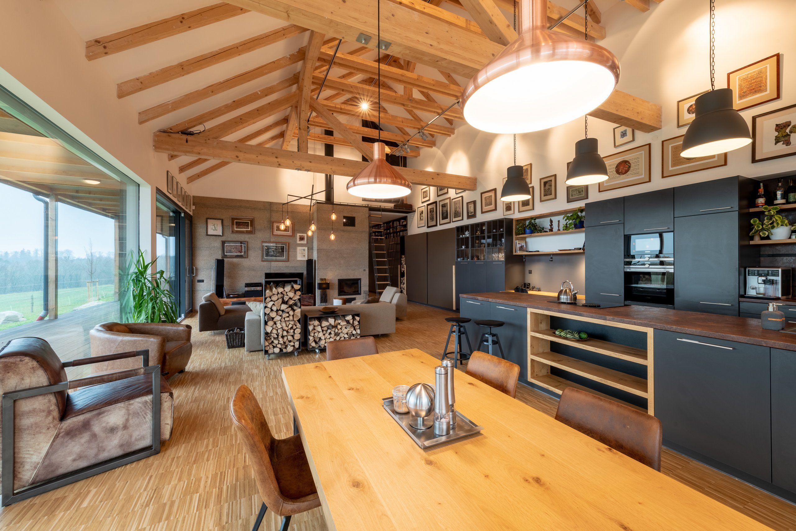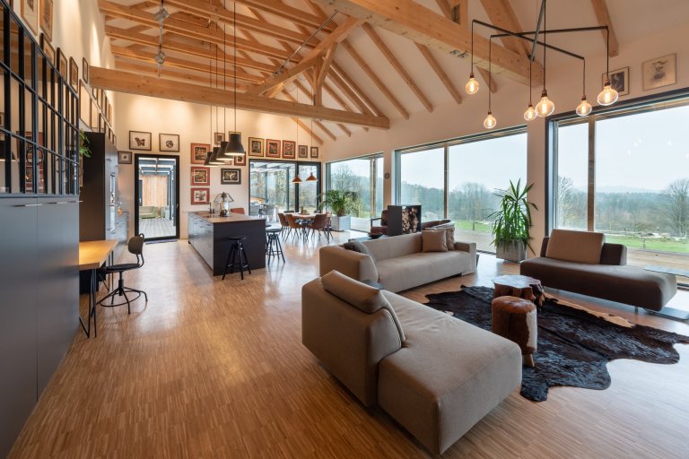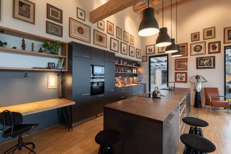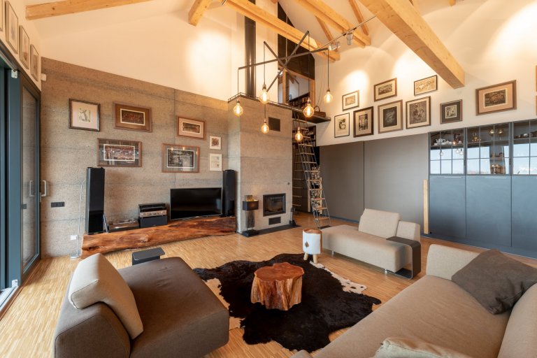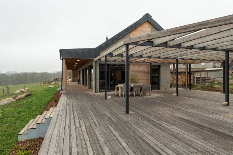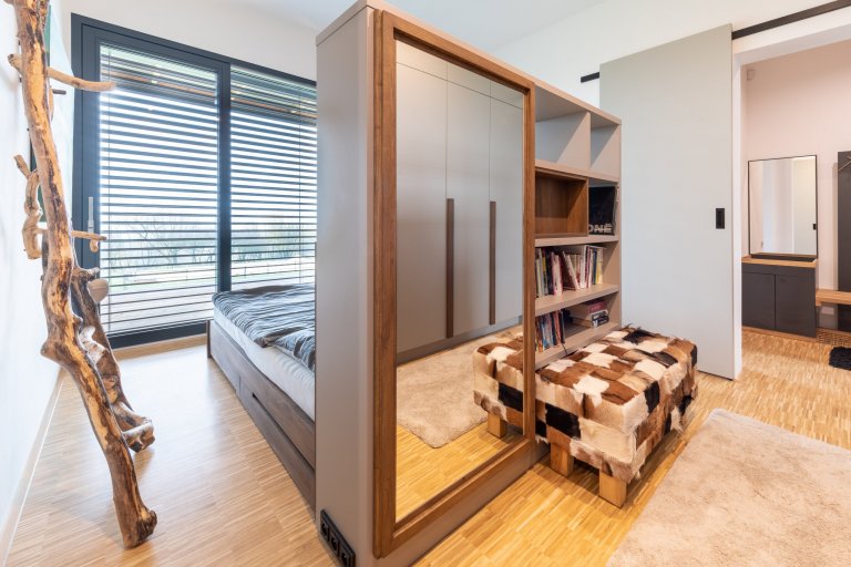 Realizace rodinné usedlosti s úžasným výhledem do krajiny. S investorem jsme pracovali na interiérech a detailech extriéru při výběru materiálu, členění prostoru a barevnosti. Veškeré nábytky byly vyráběny na míru na základě návrhu.