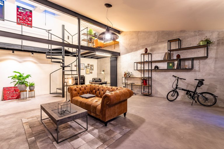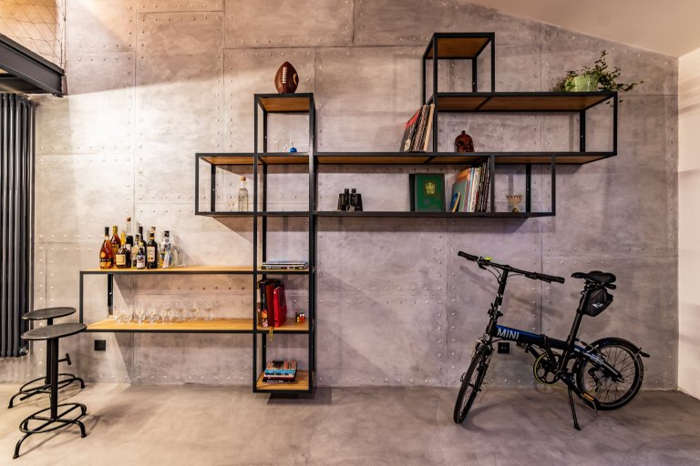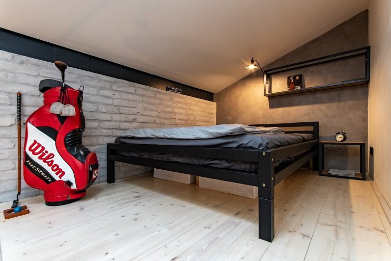 Majitel bytu, mladý muž, měl jasné zadání. Představoval si industriální pánský styl, z kterého půjde cítit jeho životní styl a záliby. Jako je například golf, motorky a dobrý rum. Byt se nachází ve vnitrobloku u brněnské části Brno-střed.