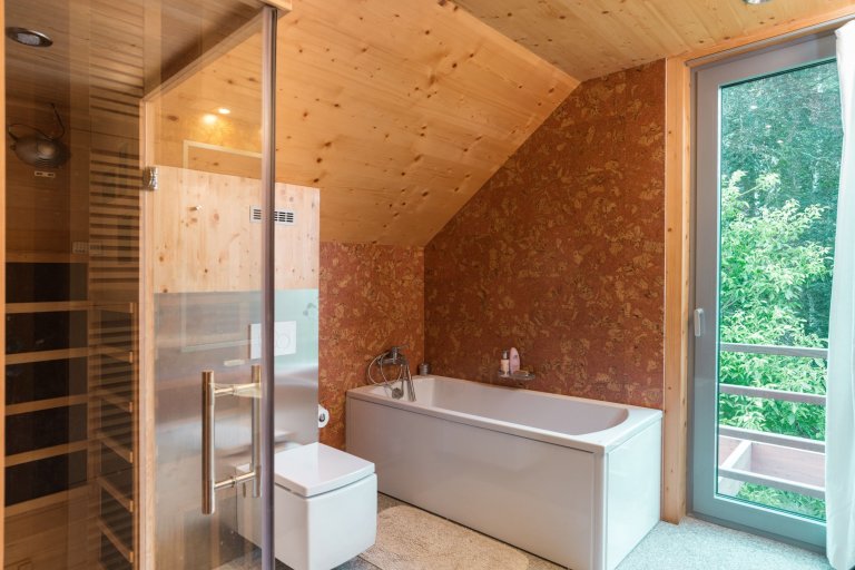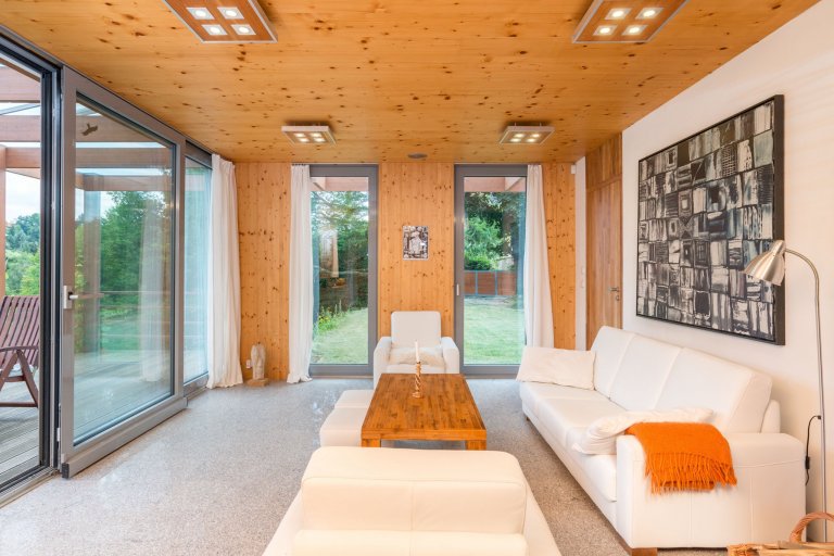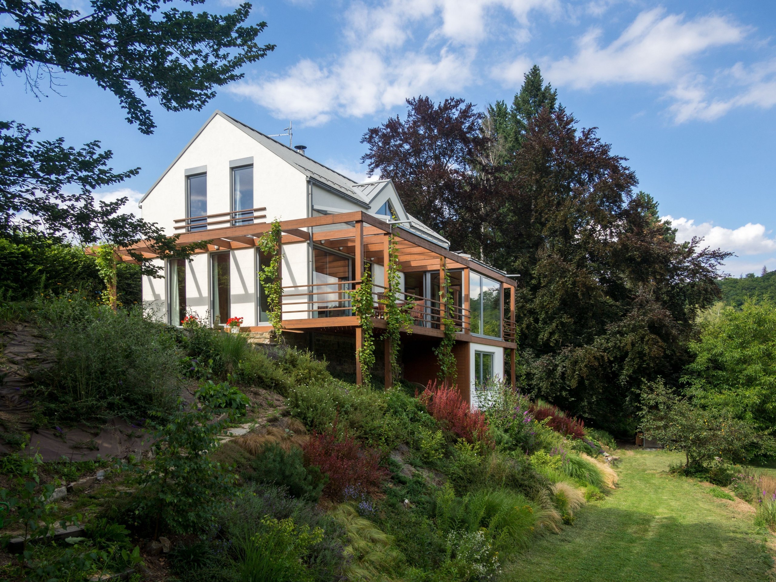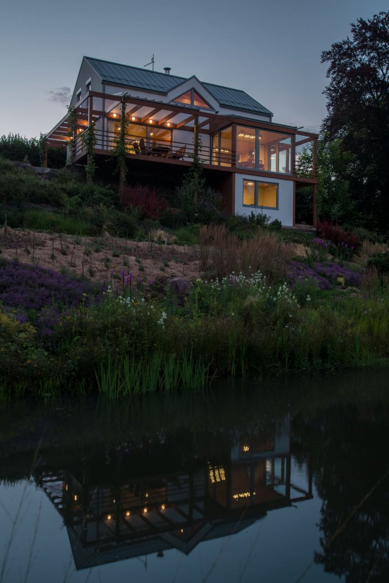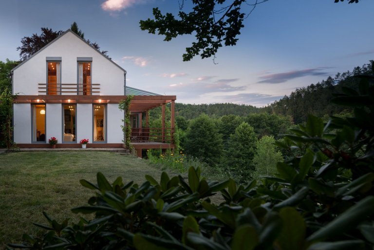 Tento dům s překrásným výhledem na řeku Sázavu je navržen pro bydlení čtyřčlenné rodiny.