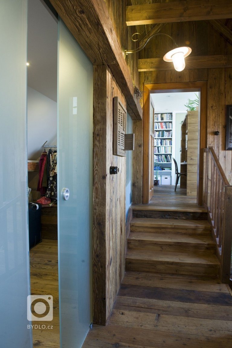 Kolem komory přicházíme k vyrovnávacímu schodišti před ložnicí