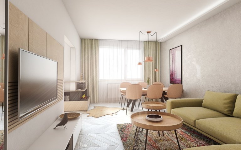Do novostavby bytového domu v Rohožníku sme navrhli útulný a inšpiratívny interiér menšieho 2-izbového bytu. Starostlivo zvolený koncept dotvárajú premyslené materiály a povrchy. Akcent v podobe terakotovej farby sme dali na kuchyňu, ktorá tvorí ideovú dominantu prepojeného priestoru.