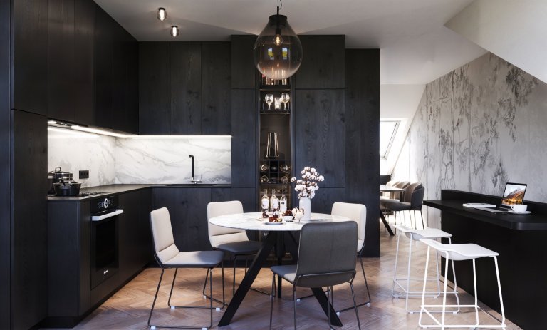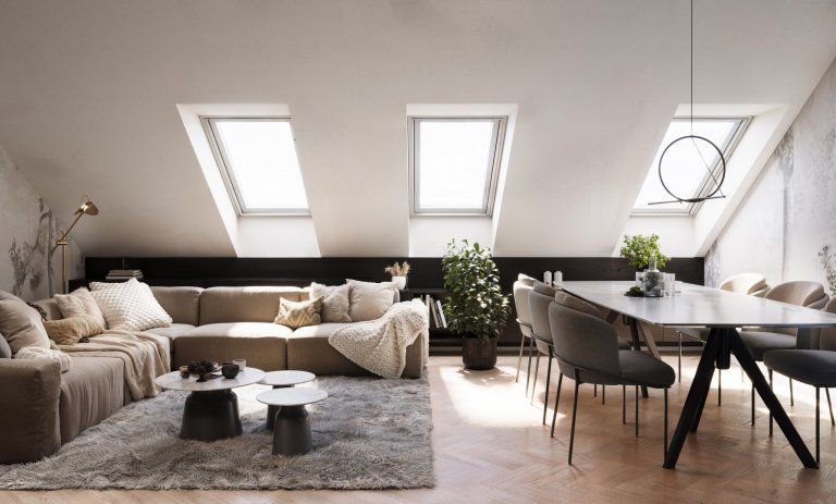 Tento projekt v Křižíkově ulici představuje elegantní podkrovní interiér, který kombinuje moderní design s přírodním nádechem. Prostor je zalitý přirozeným světlem díky střešním oknům, což vytváří…