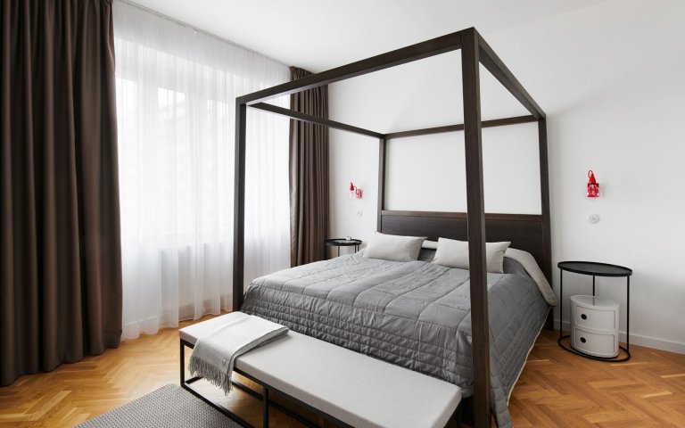 Byt sa nachádza priamo v centre bratislavského Starého mesta, kde bol postavený ešte v povojnových rokoch. Pôvodne bola jeho rozloha oveľa väčšia. Bývalí majitelia sa ho však rozhodli rozdeliť na dva menšie byty, ktoré sú však svojou plochou stále veľkorysé na dnešné pomery. Lokalita bytu a architektúra s vysokými stropmi bola našou predlohou pre návrh interiéru. Hneď po prvej obhliadke bytu a úvodnom stretnutí s majiteľmi sme mali jasnú predstavu o tom, akým smerom budeme navrhovať.