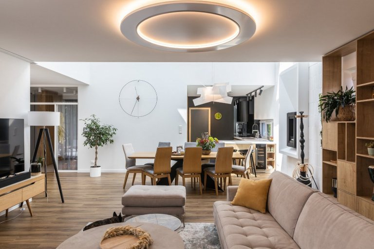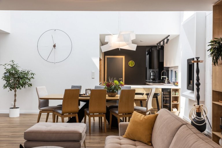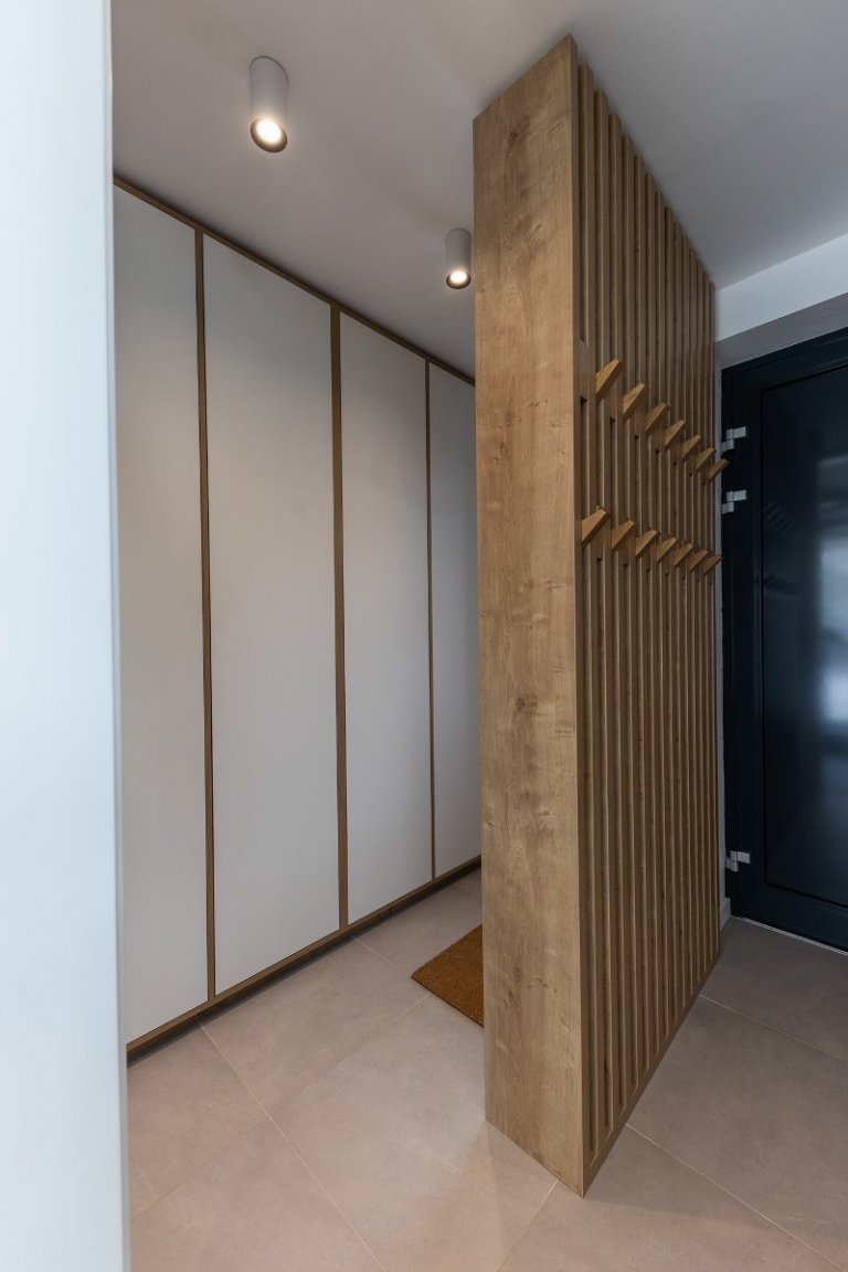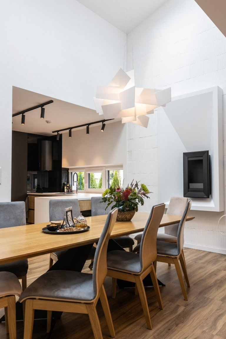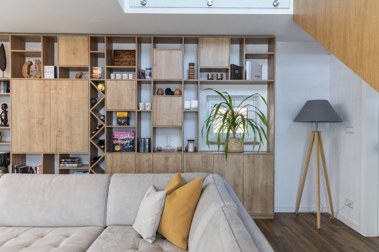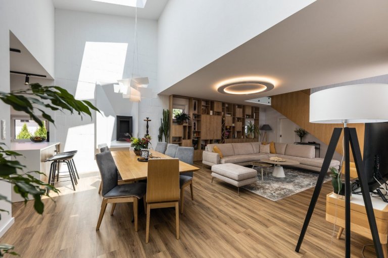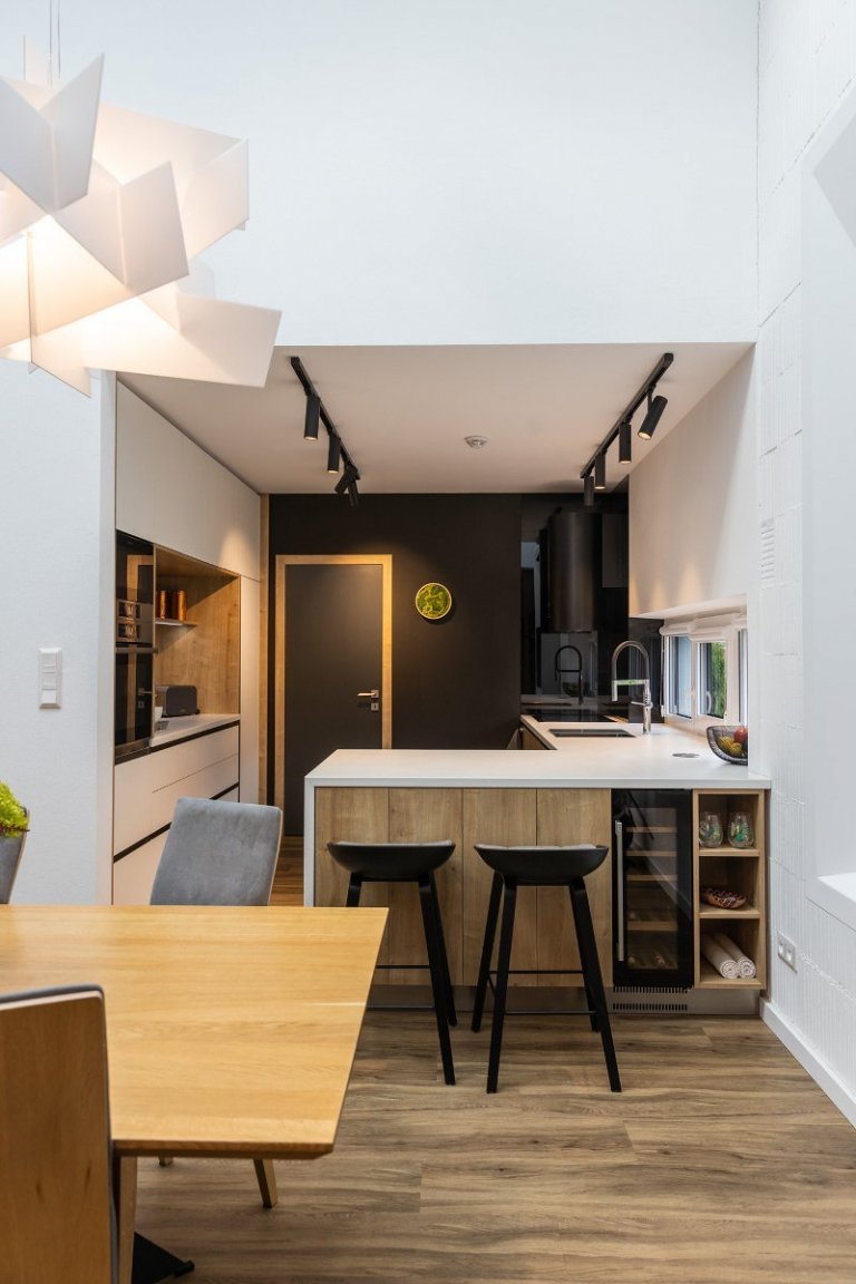rodinný dom v obci jasenica sa u nás rodil už od samotnej štúdie. pri návrhu interiéru sme ku spokojnosti klientov zapracovali najmä požiadavku aby interiér pôsobil útulne, boli použité zemité farby, drevo. interiér sa mal uberať do súčasného,škandinávskeho štýlu s jemnými prvkami vidieckeho. tehlové tvarovky namaľované na bielo a priznaný pohľadový betón poskytli priestor na niečo nezvyčajné a originálne