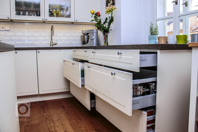Náročná rekonstrukce bytu v centru Chebu z 19. století. Kompletní návrh a realizace kuchyně v barvě vanilky. Stylově měla kuchyně odpovídat původním špaletovým oknům a dveřím a celkové atmosféře.