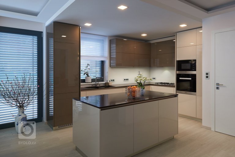 Příjemná kuchyně Hanák v barvách Mocca a Champagne. Realizace Hanák Fórum Praha.
