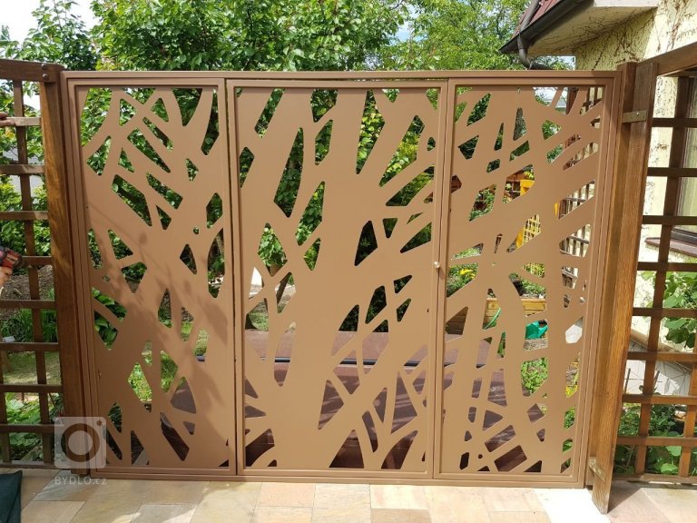 Dodání a montáž oddělovací zástěny. Uprostřed zástěny jsou dvířka která umožňují vstup do výřivky.