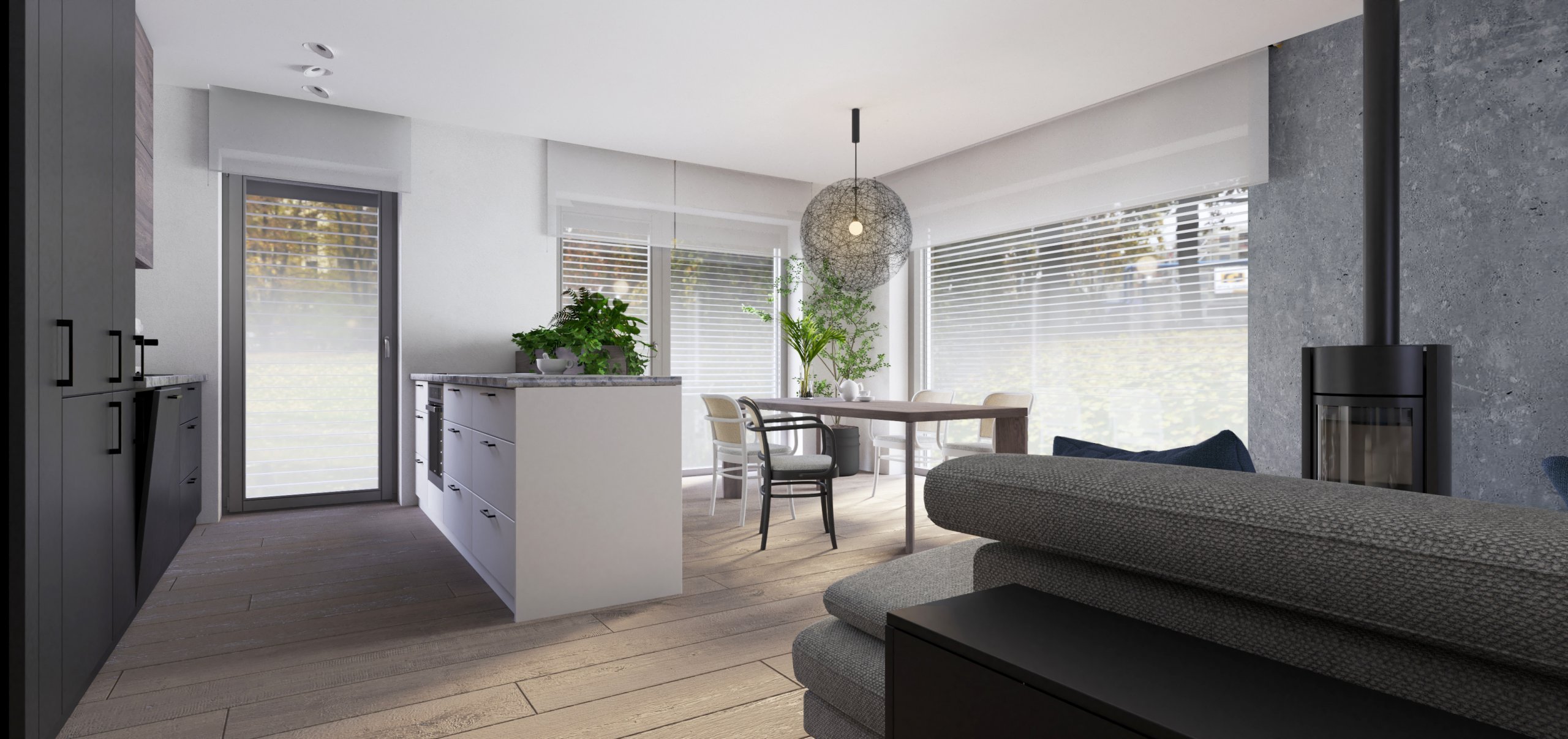 Tato zakázka směřovala k vytvoření návrhu hlavního obytného prostoru domu jehož součástí je, v souladu s aktuálním trendem, i kuchyně.