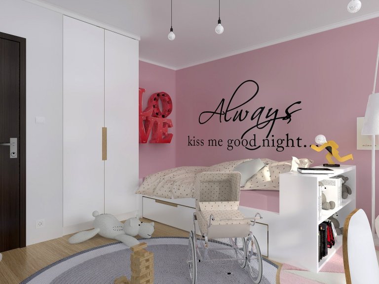 Snad každá malá princezna miluje růžovou, puntíky, proužky veselý a hravý svět, kde bude mít své místo pro panenky, poníky a všechna ta plyšová zvířátka, ale také místo, kde si bude moci nejen hrát, ale také plnit své školní povinnosti, a takové přání měla i maminka holčičky. Pokoj byl do té doby malinko smutný a tak jsme jej rozjasnili bílým nadčasovým nábytkem z masivního dřeva, rozvernými žárovkami, domečkem, který slouží jako knihovna i psací plocha pro vzkazy a na podlahu rozprostřeli barevné kusové koberce, které lze s časem kdykoliv vyměnit a zístat tak docela jinou podobu daného prostoru... Jednoduchý a čistý design tak s holčičkou může růst dlouhá léta, aniž by ji omrzel.