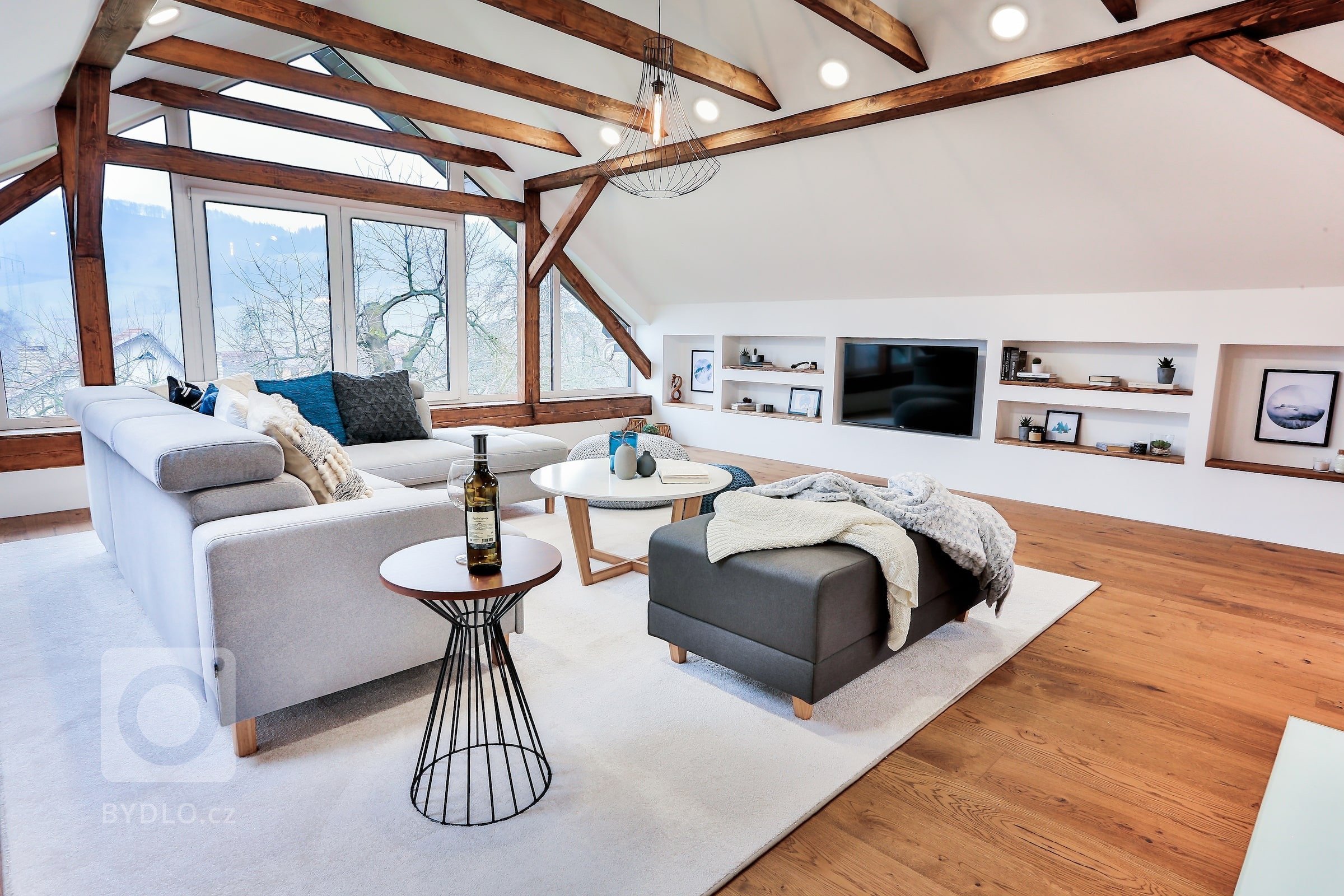 Byt, který vznikl v podhůří Beskyd ze zrekonstruované půdy staršího domu, beze zbytku splnil očekávání mladého páru. Designérce se do něj povedlo promítnout jak jejich lásku k novým objevům, tak přání po zachování starého. Polozapomenuté prostory půdy tak rázem ožily atmosférou umocněnou kontrastem mezi klasickými stropními trámy ze dřeva a moderním vybavením interiéru.
