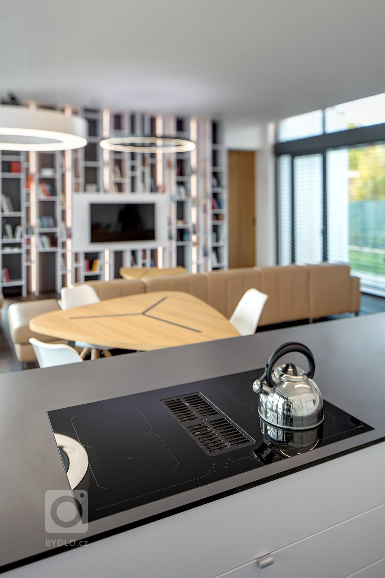 Koncept Jednopodlažní dům, půdorysně členěný objekt s plochou střechou. Propojení několika kvádrů s různou konstrukční výškou, uvnitř domu se tak ke slovu dostává princip gradace jednotlivých prostor. Bílá a šedá bosovaná omítka, otevřenost do zahrady, smysluplná dispozice. Nic víc. …