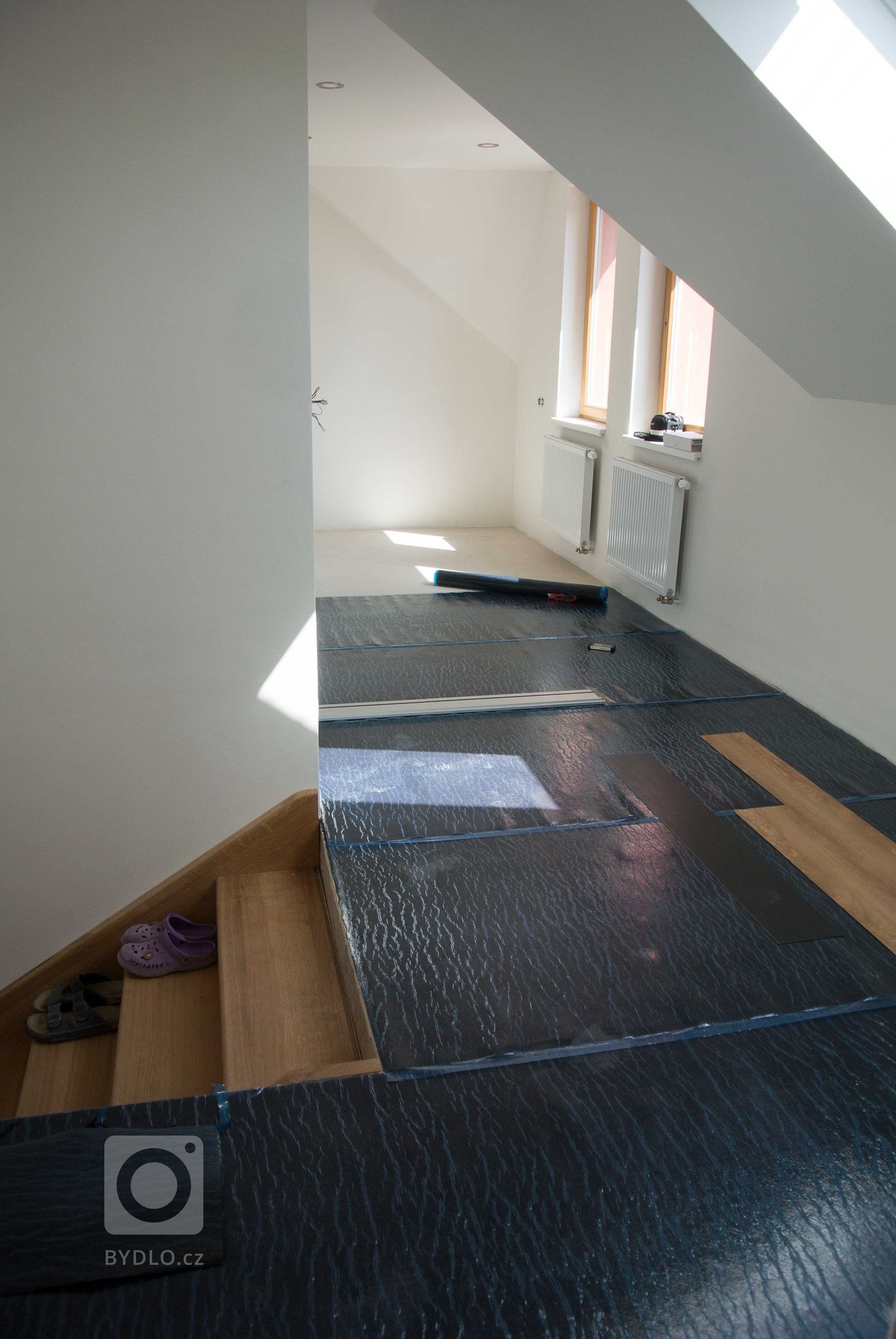 Instalace s akustickou podložkou InstaLay HG25, podložka se rozmotá na připravený podklad bez lepení