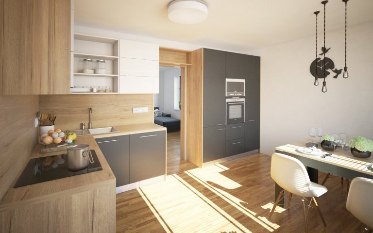 Do rekonstruovaného bytu pro mladý pár, jsme navrhovali kuchyňskou linku v moderním stylu.