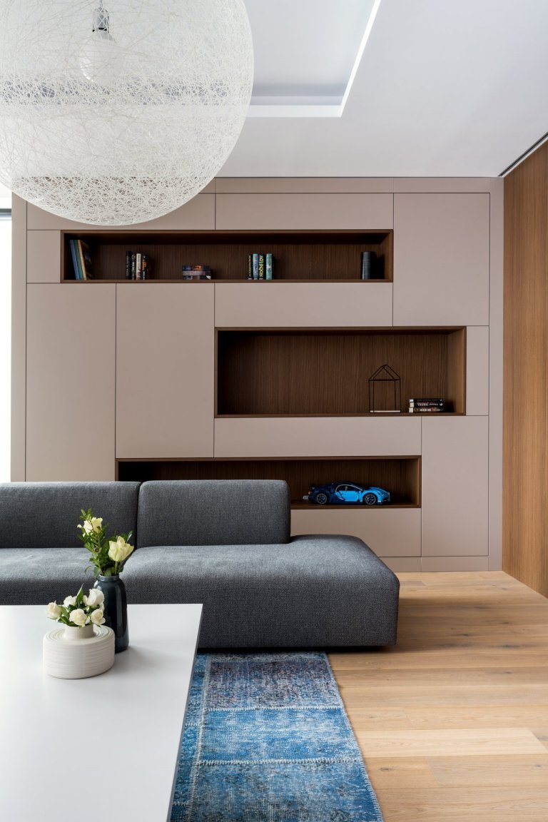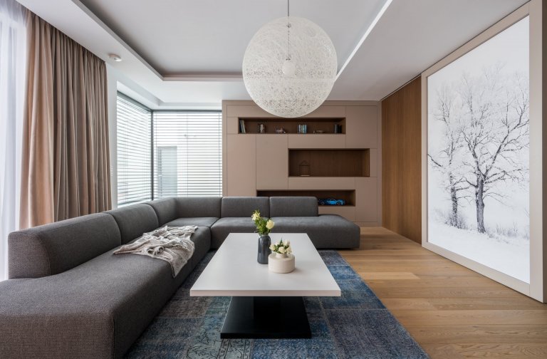 Radostí každého architekta je realizovat projekt, jehož rolí je plná využitelnost. V případě této realizace, interiéru pro čtyřčlennou rodinu, která v domě nepřebývá, ale žije, se lze bavit o maximální vytíženosti. Architekt Filip Hejzlar, který se projektu ujal, vycházel z puristicky béžové koncepce, která klienty oslovila a inspirovala, nicméně pro tuto realizaci se rozhodl pro živější schéma barev i materiálů.