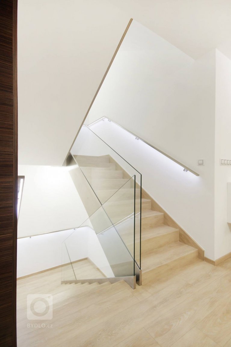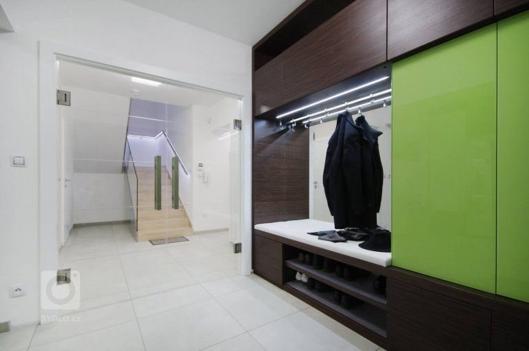 Když se vila poprvé otevřela našim zrakům, byla kompletně zařízena a dispozičně upravena ve stylu těžkých 90'. Investoři jsou mladí lidé a byli velmi otevřeni k novým řešením. Celý dům jsme navrhovali v pojetí designu s důrazem na výrazný dřevěný dekor. Kuchyně a obývací pokoj jako srdce domu. Jednoznačně tomuto prostoru převládá barevný duch tón v tónu. Monumentální a kontrastní portály mezi místnostmi jasně oddělují jednotlivé fukční prostory a přitom ponechávají prostoru jednotu a integritu.