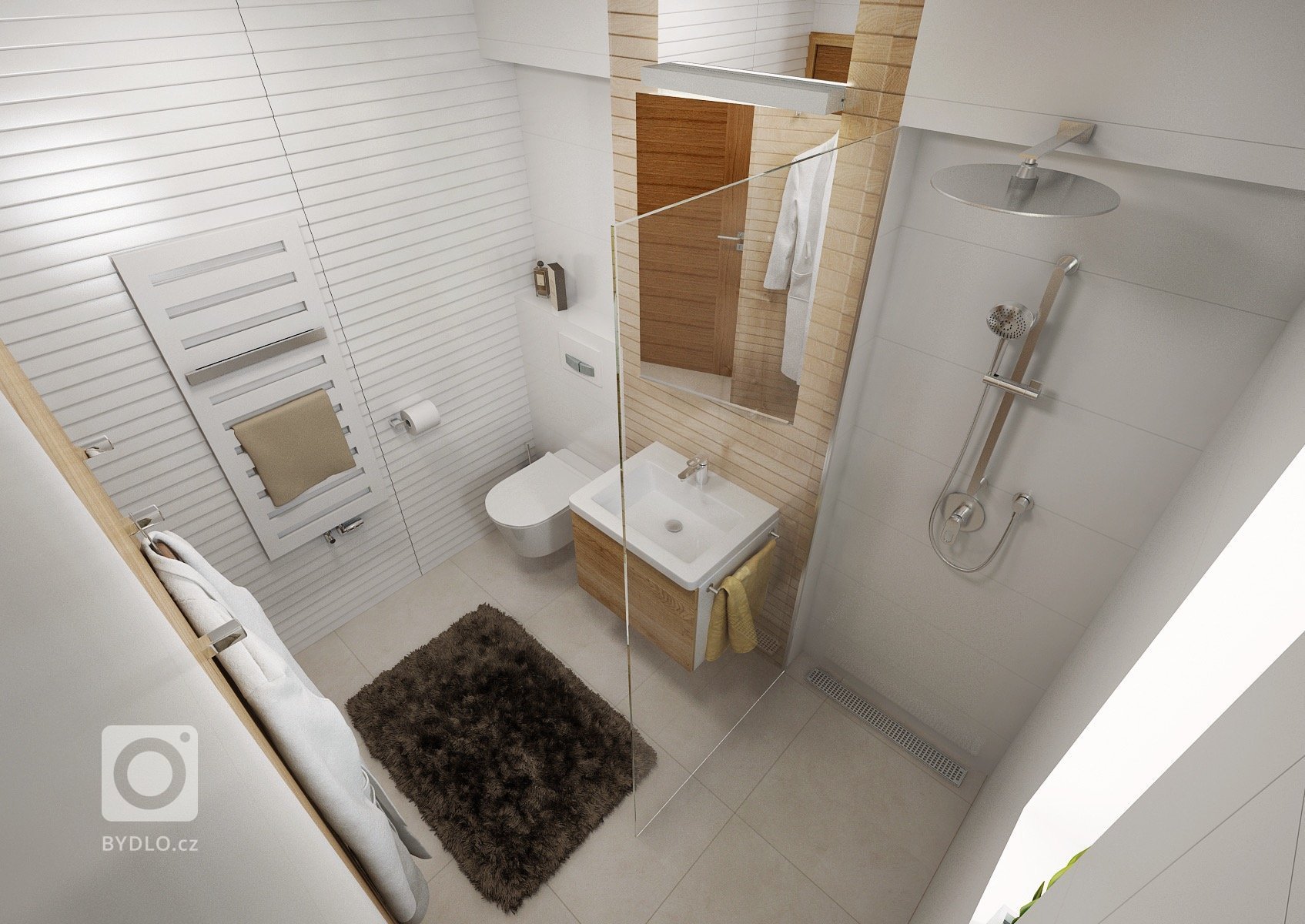 Rekonstrukce RD v Praze se nese v moderním trendu dýhy medového dubu, bílé lesklé LTD a doplňkové šedé barvy na prac. desce v kuchyni z umělého kamene a dekorační stěrce. Domem se prolíná grafický motiv listů, který se pískovaný opakuje na sklech v kuchyni chodbě.