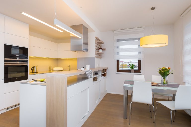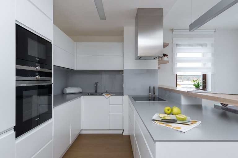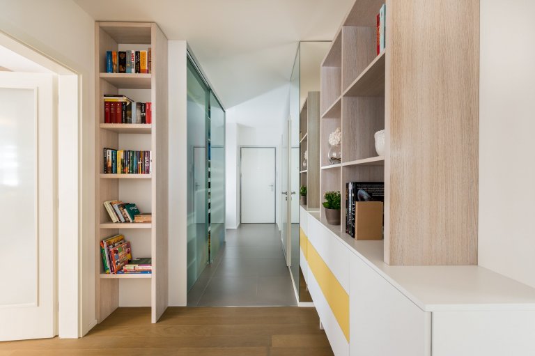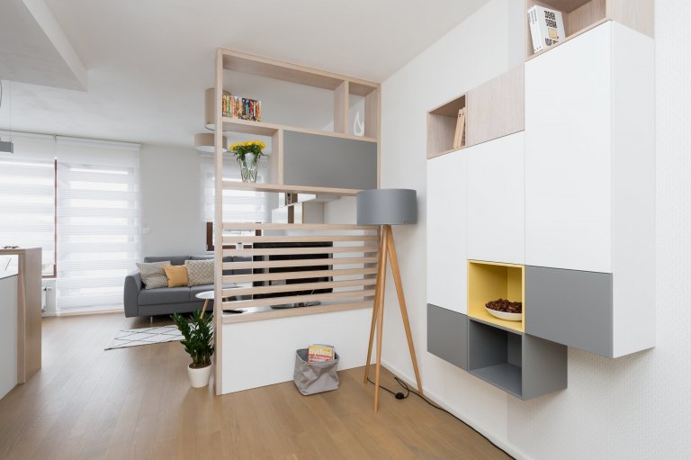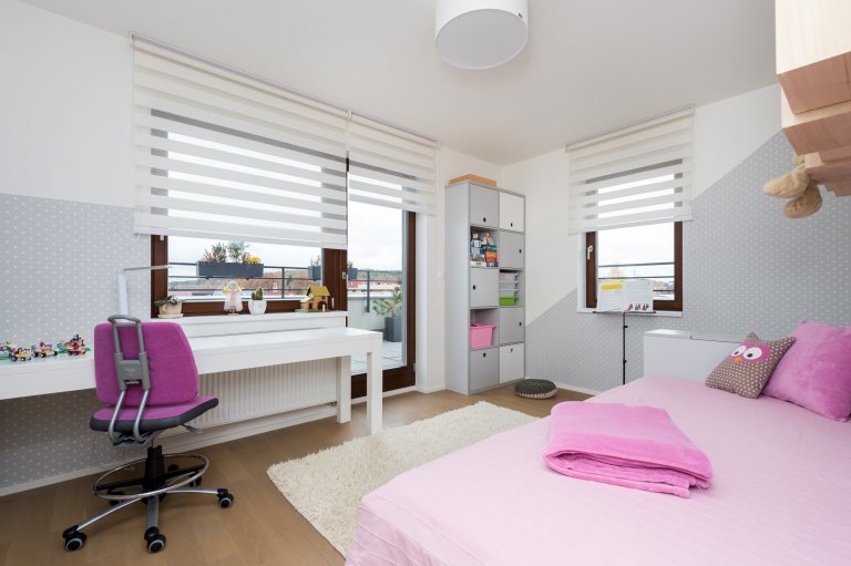 Klienty jsem byla oslovena již ve fázi přípravy výstavby bytu o ploše cca 102 m2. V první fázi šlo zejména o výběr podlah, dveří a návrh změny 3 koupelen. Ve druhé fázi se naše spolupráce rozšířila o návrh řešení interiéru i dalších místností bytu: kuchyně s obývacím pokojem, dětského pokoje pro dívku a předsíně. Klienti požadovali interiér útulný, praktický, neokázalý, ale s použitím kvalitních materiálů.