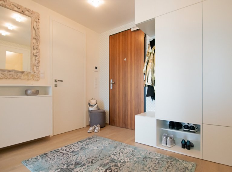 Byt s výhledem na Vltavu je pravým dámským královstvím. Inspirací při jeho realizaci se stalo to, co je vidět z okna – voda, slunce a příroda.