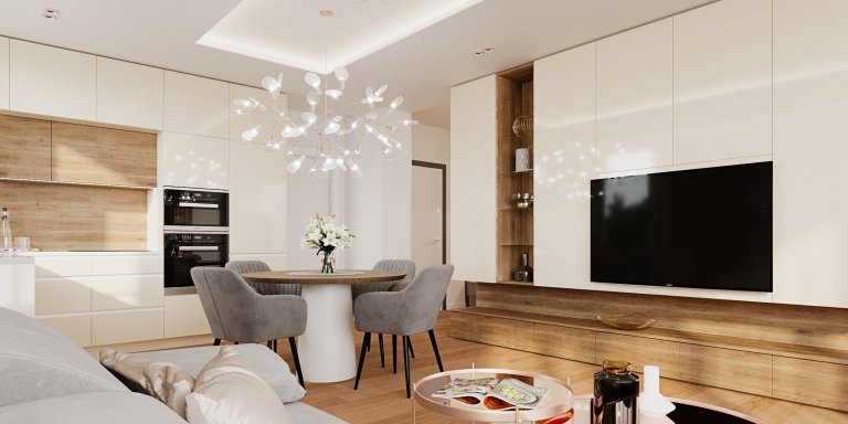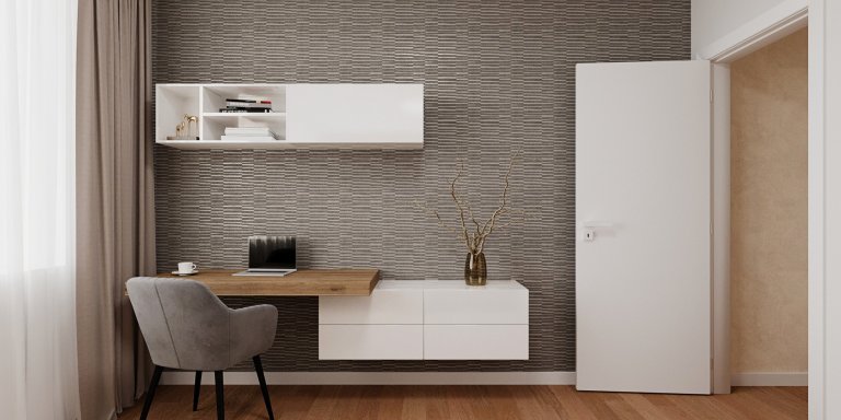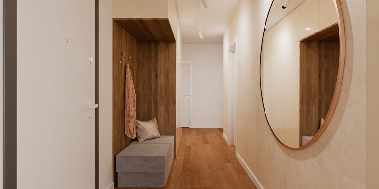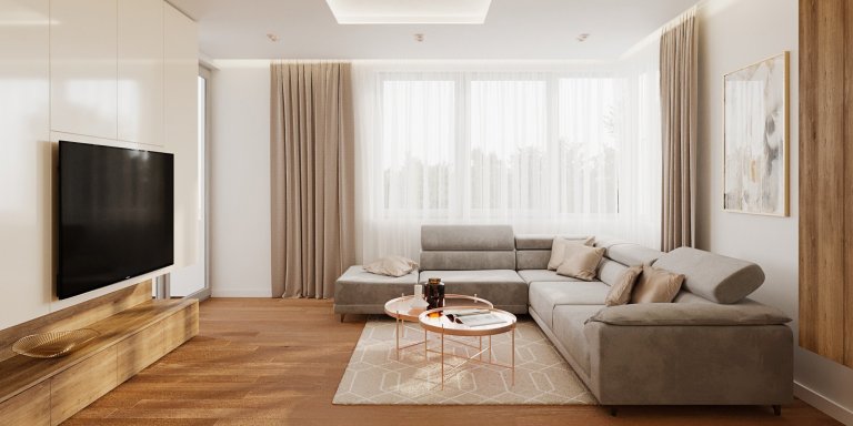 Elegantný byt v zemitých farbách. Dôležitou úlohou, ktorá súvisela s požiadavkou na jednoduchý čistý interiér, bolo vytvoriť dostatok úložných priestorov.