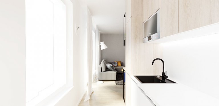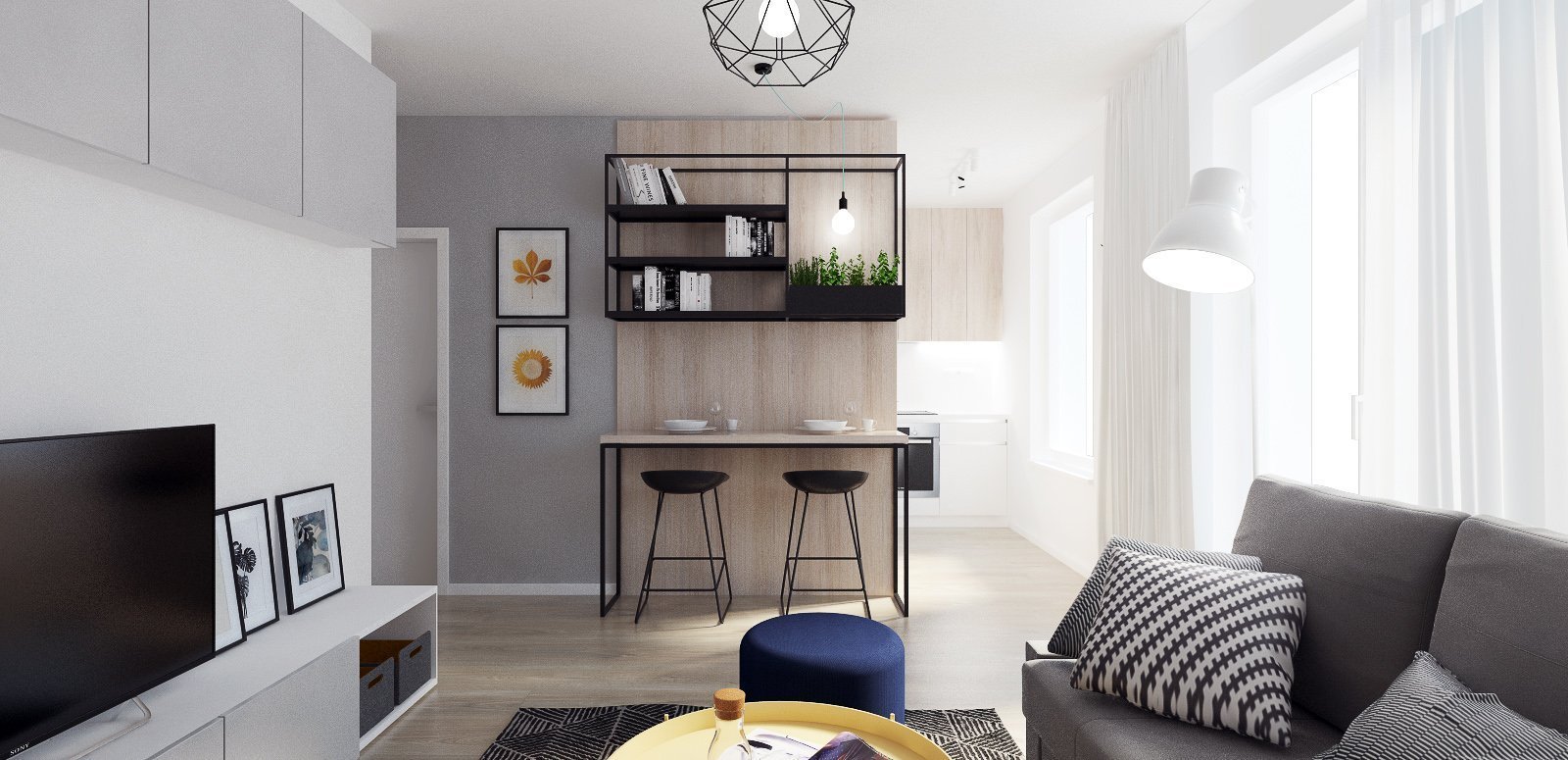 Útulný dvojizbový byt v Dúbravke je v znamení chlapského interiéru s dôrazom na funkčnosť a kontrastný dizajn.