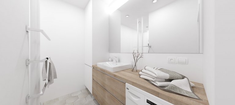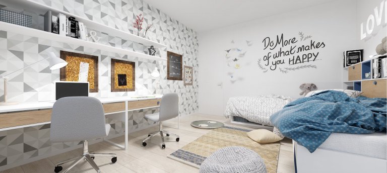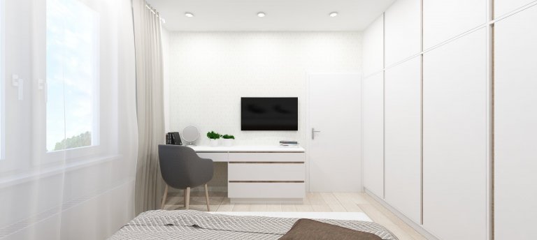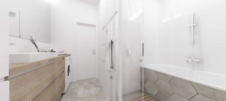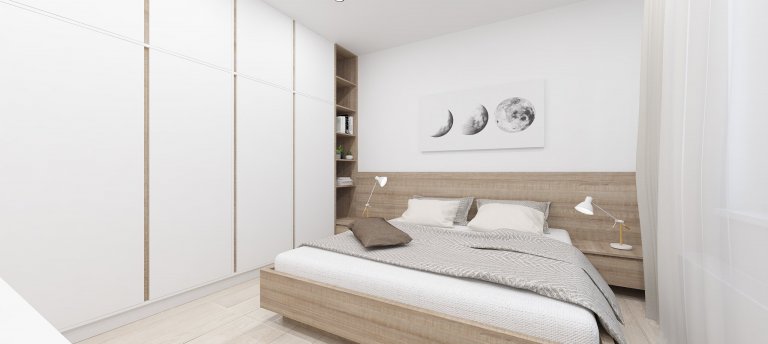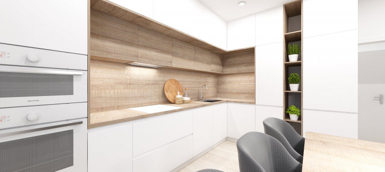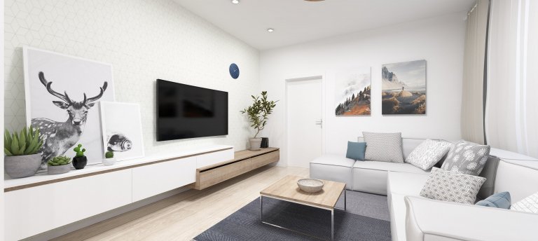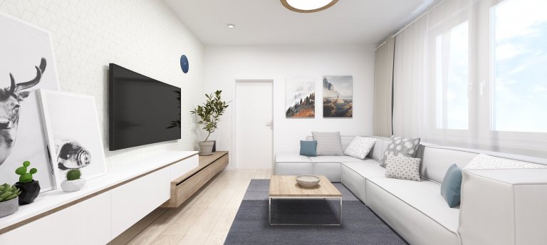 Zrekonštruovaný byt v Ružinove je založený na jednoduchosti, čistote a funkčnosti. Celý koncept je inšpirovaný vzdušným štýlom škandinávskych interiérov, ktoré charakterizuje osvedčená kombinácia dreva a bielej farby s doplnkami v sivej a modrej farbe. Veľa zelene a jemná tapeta oživujú minimalistický dizajn.
