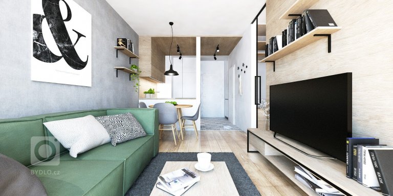 Mladistvý interiér s príjemnou atmosférou a jemnými prvkami industriálneho štýlu sme opäť hravo navrhli do malometrážneho bytu v projekte Slnečnice.