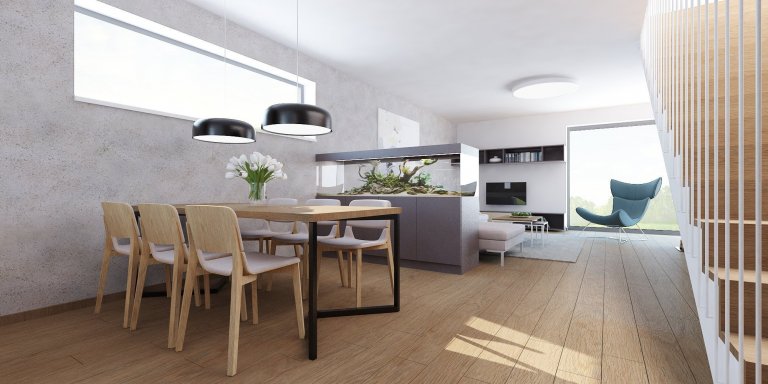 Minimalistický a priestranný interiér rodinného domu v Nitre s originálnymi solitérmi pôsobí harmonicky a čisto. Pri návrhu farebného konceptu sme vychádzali z príjemného kontrastu dreva s bielou ale…