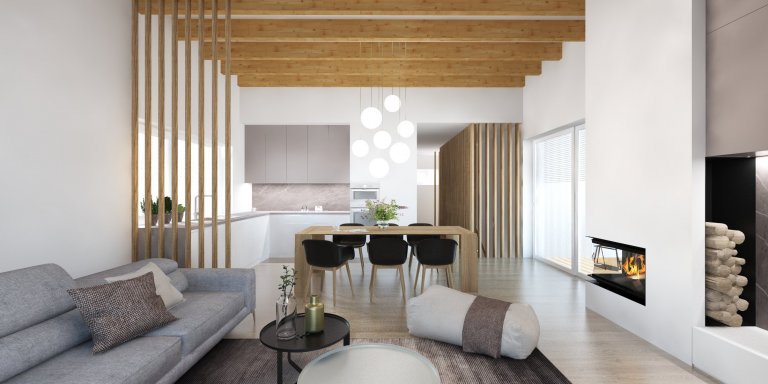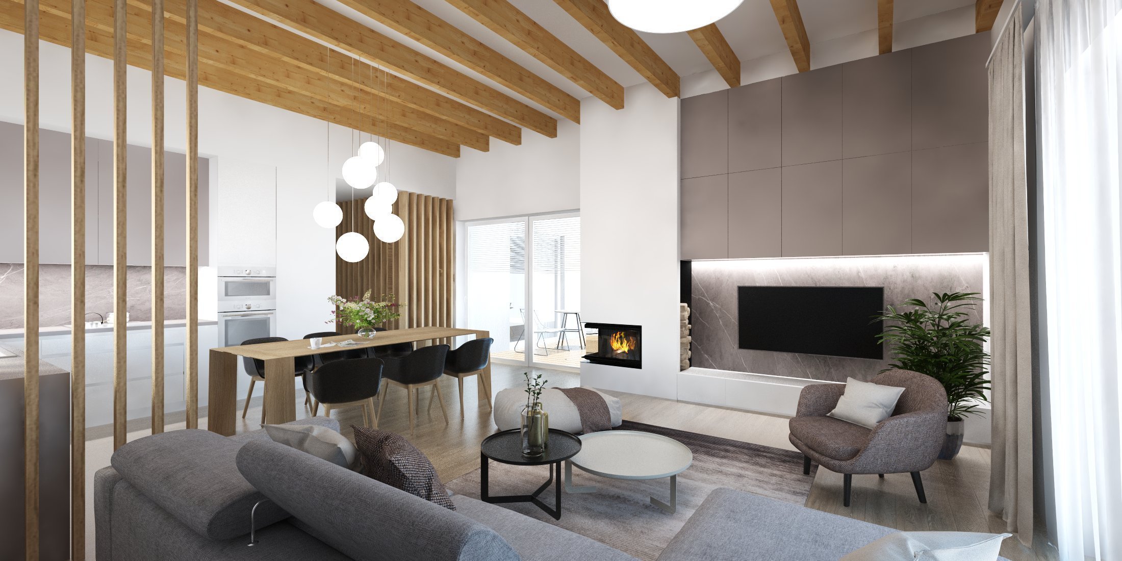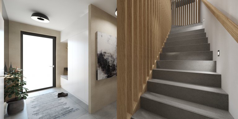 Príjemný interiér rodinného domu, ktorý je navrhnutý v obľúbených naturálnych farbách s dôrazom na nadčasovosť.