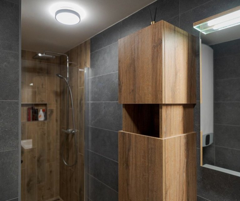 Prohlédněte si změnu staré panelákové koupelny s umakartovým jádrem, vanou a otočným umyvadlem. Prostor koupelny se díky rekostrukci výrazně zvětšil. Výměna vany za sprchový kout prostor…