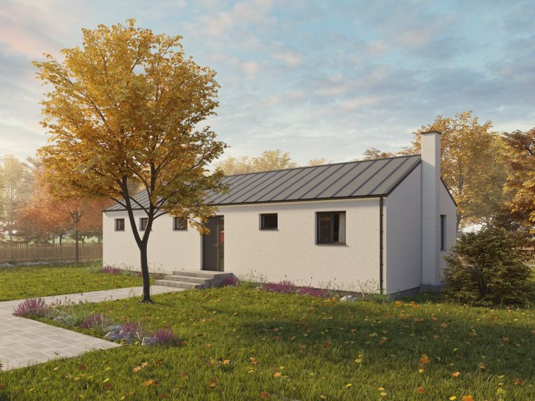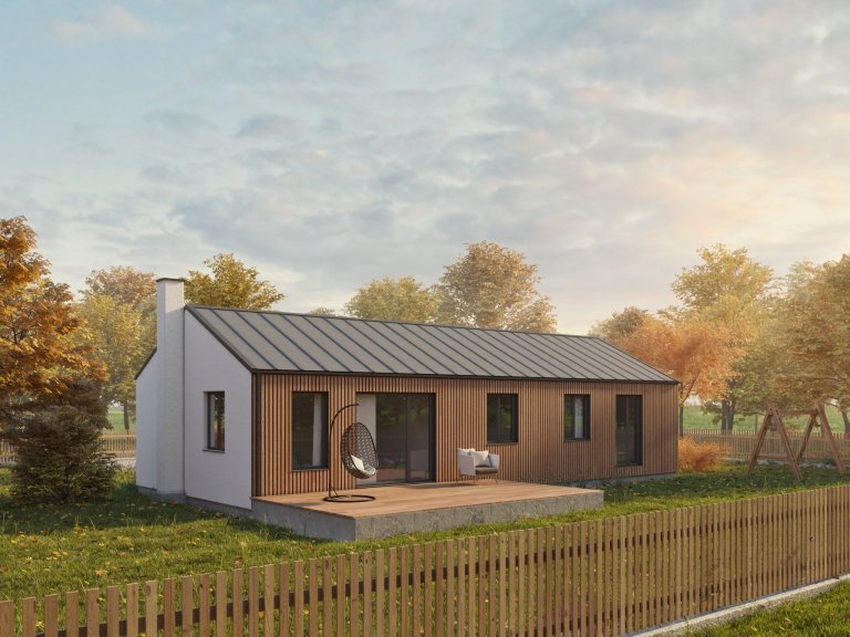 Dřevostavbu Easy 107 jsme do typových staveb zařadili zejména kvůli velké oblibě dřevostavby Easy 96, která za posledních 5 let byla naší nejprodávanější nemodulovou stavbou. Rozšířili jsme půdorys o 1m2 a tato změna se projevila ve zvětšení všech hlavních obytných místností. Tato stavba se hodí jak do sídliště novostaveb, tak i do vesnické zástavby. Dispozičně se jedná o 4+kk, což je ideální pro plnohodnotné bydlení celé rodiny ale lze i propojit pokoje a uzpůsobit na 3+kk. Ideální je stavět tuto dřevostavbu již na základovou betonovou desku.