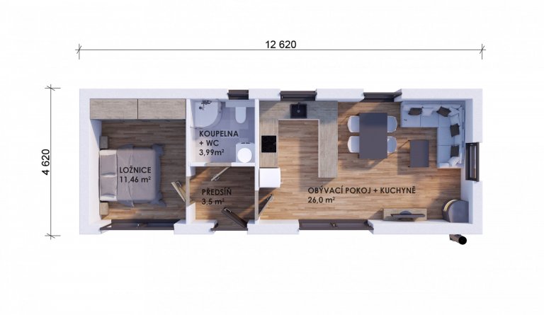 Představujeme vám zvětšený půdorys nejoblíbenější jednomodulové typové dřevostavby – EASY 48 s možnosmi dispozice 2+kk či 3+kk. Jedná se o největší převozitelný modul v případě přístupného pozemku. Pokud nelze převážet a usadit jeřábem, výstavba probíhá přímo na pozemku investora.